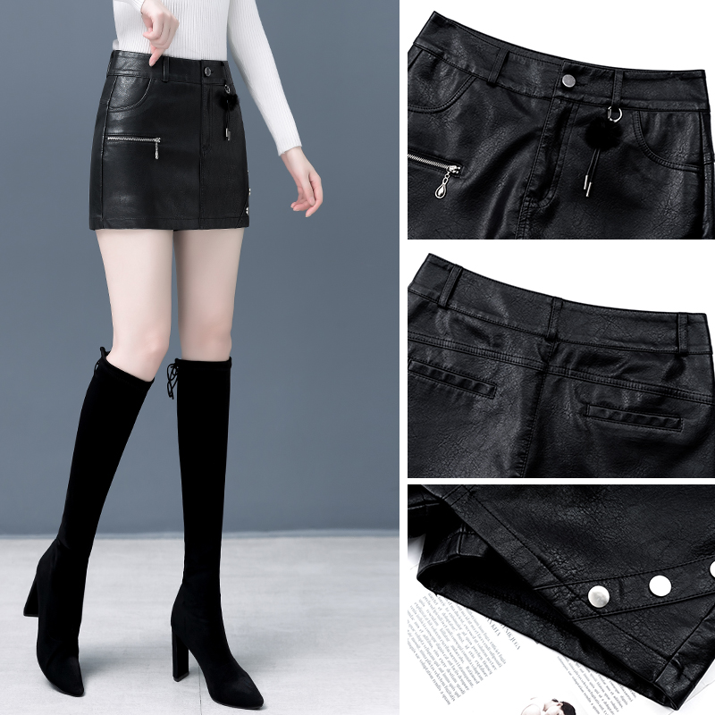 📚 海宁真皮短裤女装2025春装新款大码外穿绵羊皮显瘦包臀纯皮裙裤潮