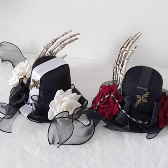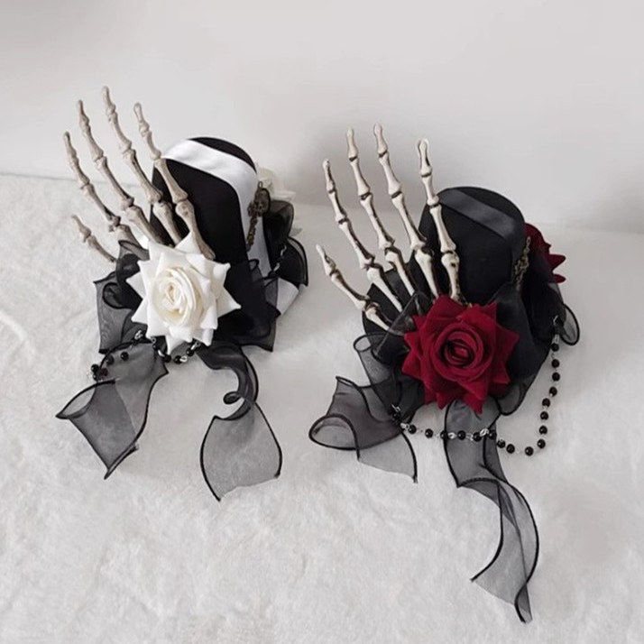 📚 COS百搭哥特风黑色帽子恶魔爪发夹玫瑰亚文化动漫头饰品飘带