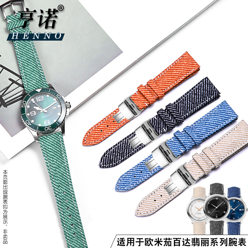 📚 适配西铁城小蓝针欧米茄蝶飞男款真皮帆布尼龙天王罗西尼万国表带