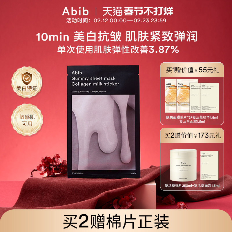 📚 Abib阿彼芙口香糖纯素胶原蛋白牛奶面膜嫩肤美白抗皱紧致保湿补水