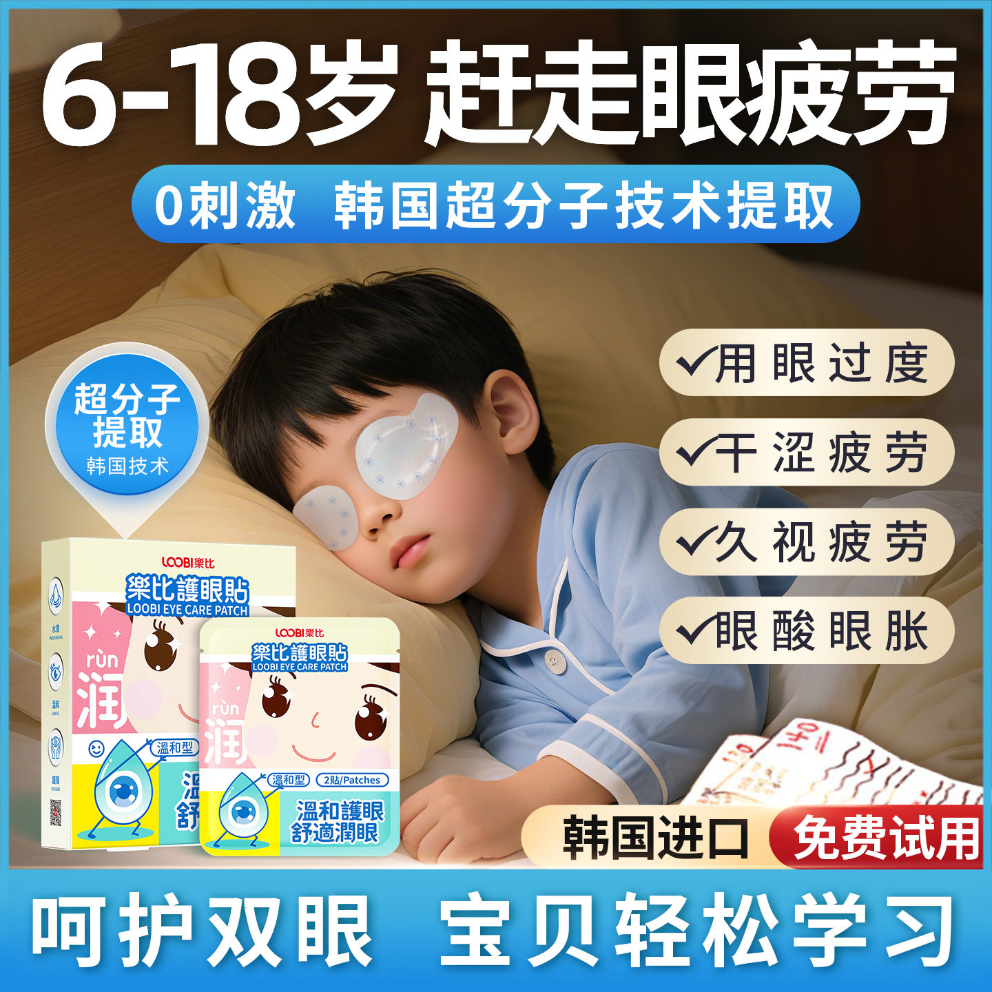 📚 韩国乐比叶黄素护眼贴儿童视力酸胀青少年学生眼疲劳成人冷敷润目
