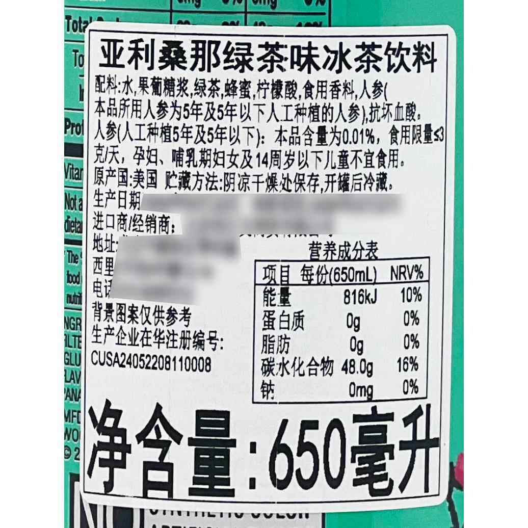 📚 美国进口饮料Arizona亚利桑那冰茶 蜂蜜绿茶650ml 大罐果味饮料