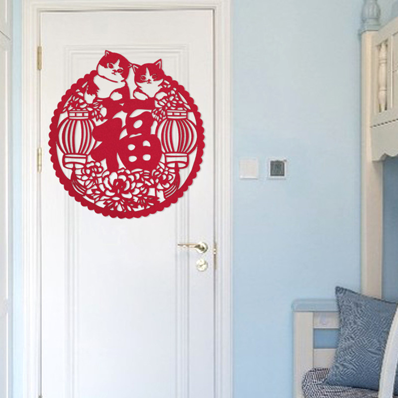 📚 富贵吉庆2026过年新年装饰品玻璃福字贴春节福贴大门无纺布福剪纸