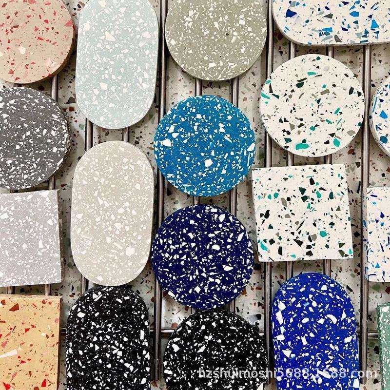 📚 水磨石石材无缝拼接圆柱茶几展示台人造水泥石彩色桌面台面洗漱台