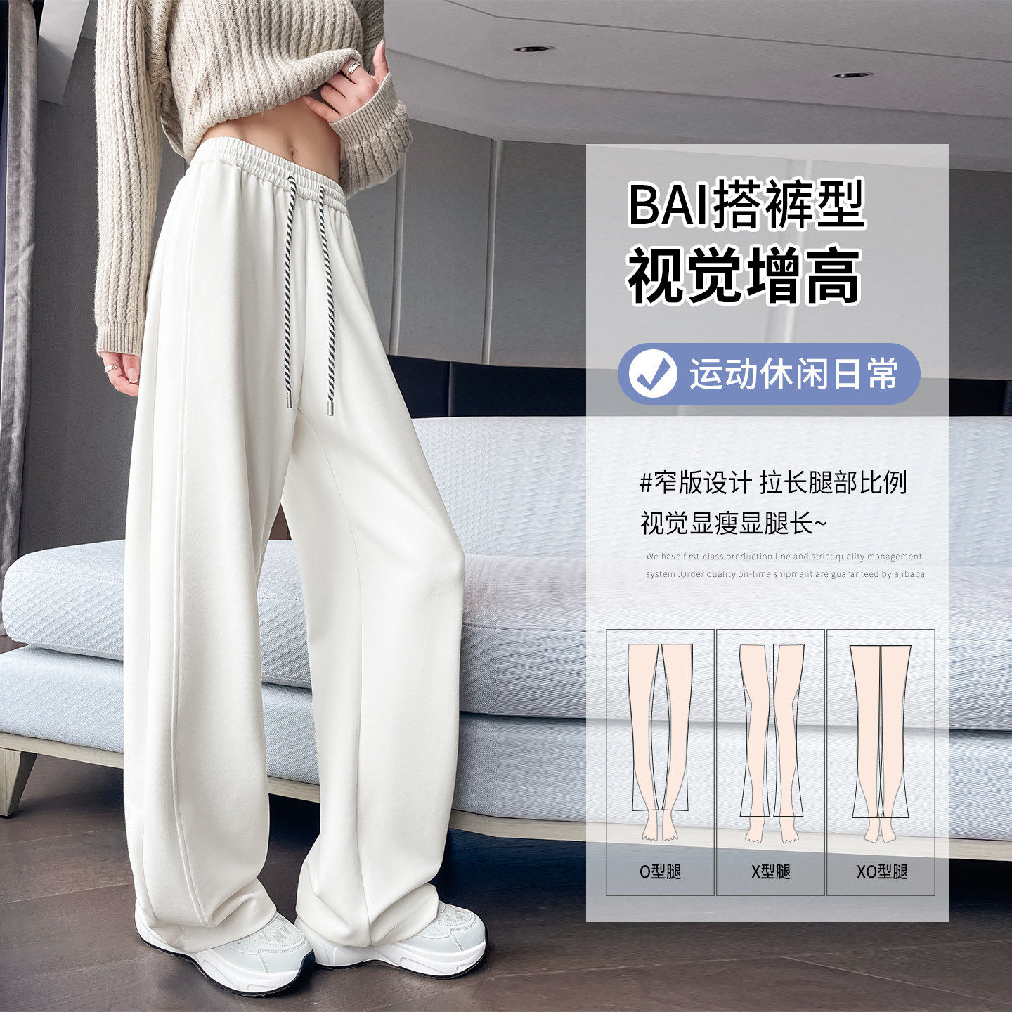 📚 弯刀阔腿裤女款2026新款春秋灰色美式运动裤冬季加绒莫代尔卫裤子