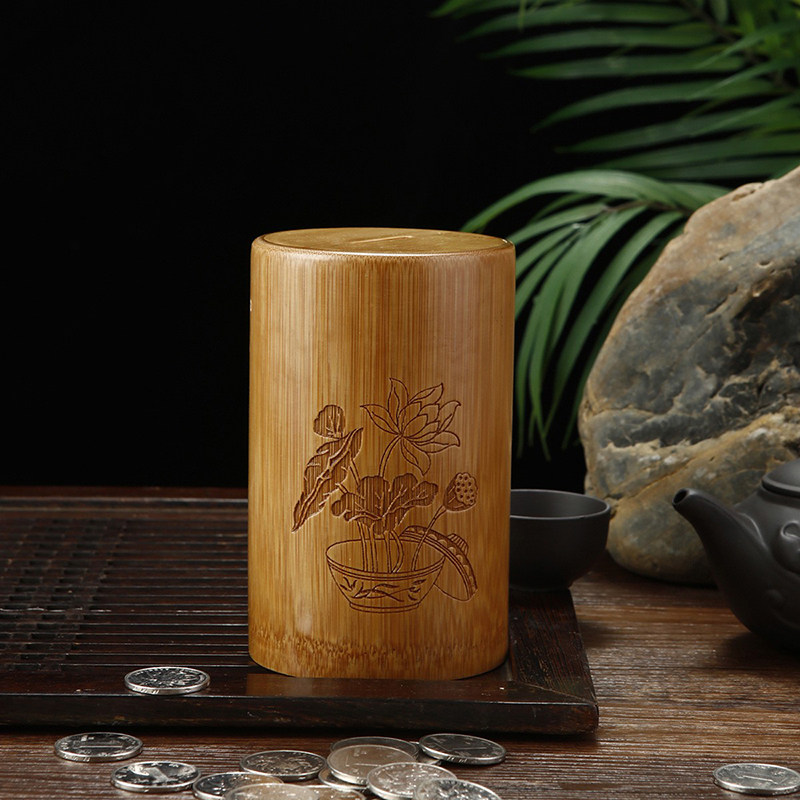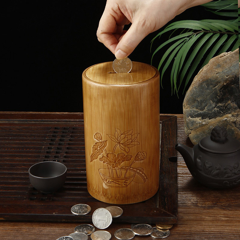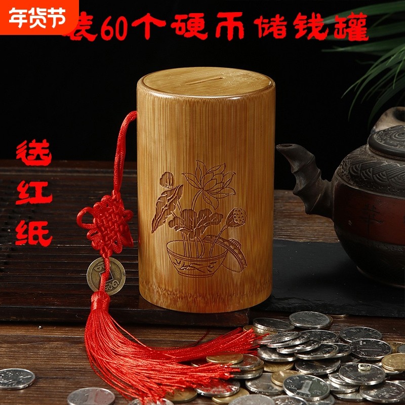 📚 复古招财竹筒存钱罐 可存可取硬币储钱罐 可装60个硬币送红纸摆件