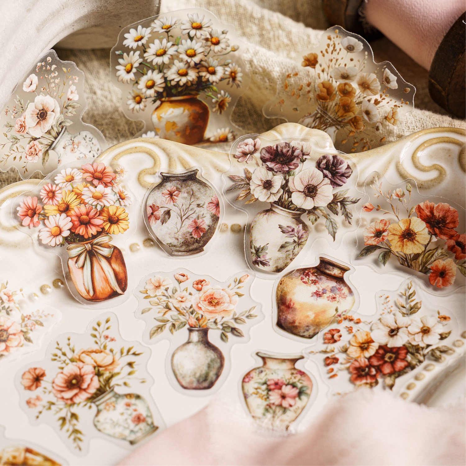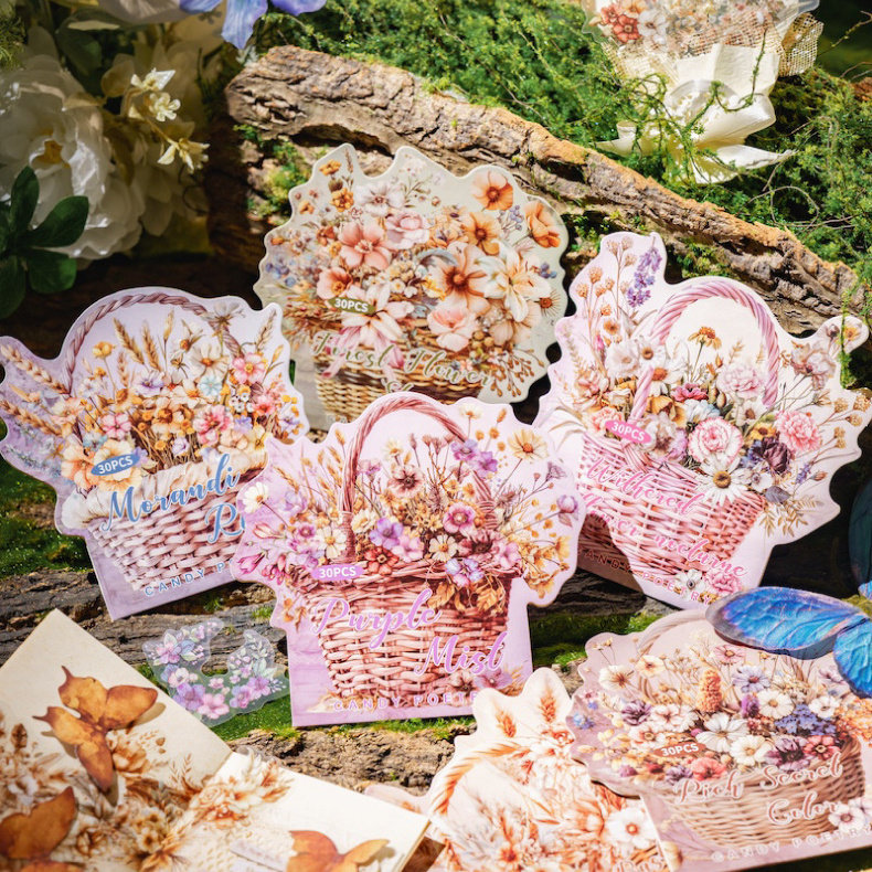 📚 糖诗森林匣子pet贴纸复古花束花环花瓶花篮造景手账diy装饰拼贴