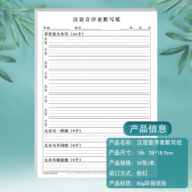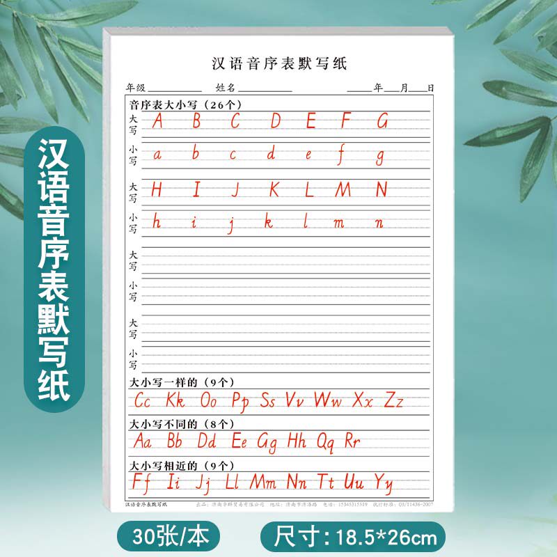 📚 小学生汉语音序表默写纸一二年级26个英文字母拼音默写大写小写音序音节每日一练课下专项练习表查字典所用