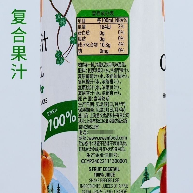 📚 【2瓶装】临期特价塞浦路斯原装进口意文100%复合果汁1L装瓶装