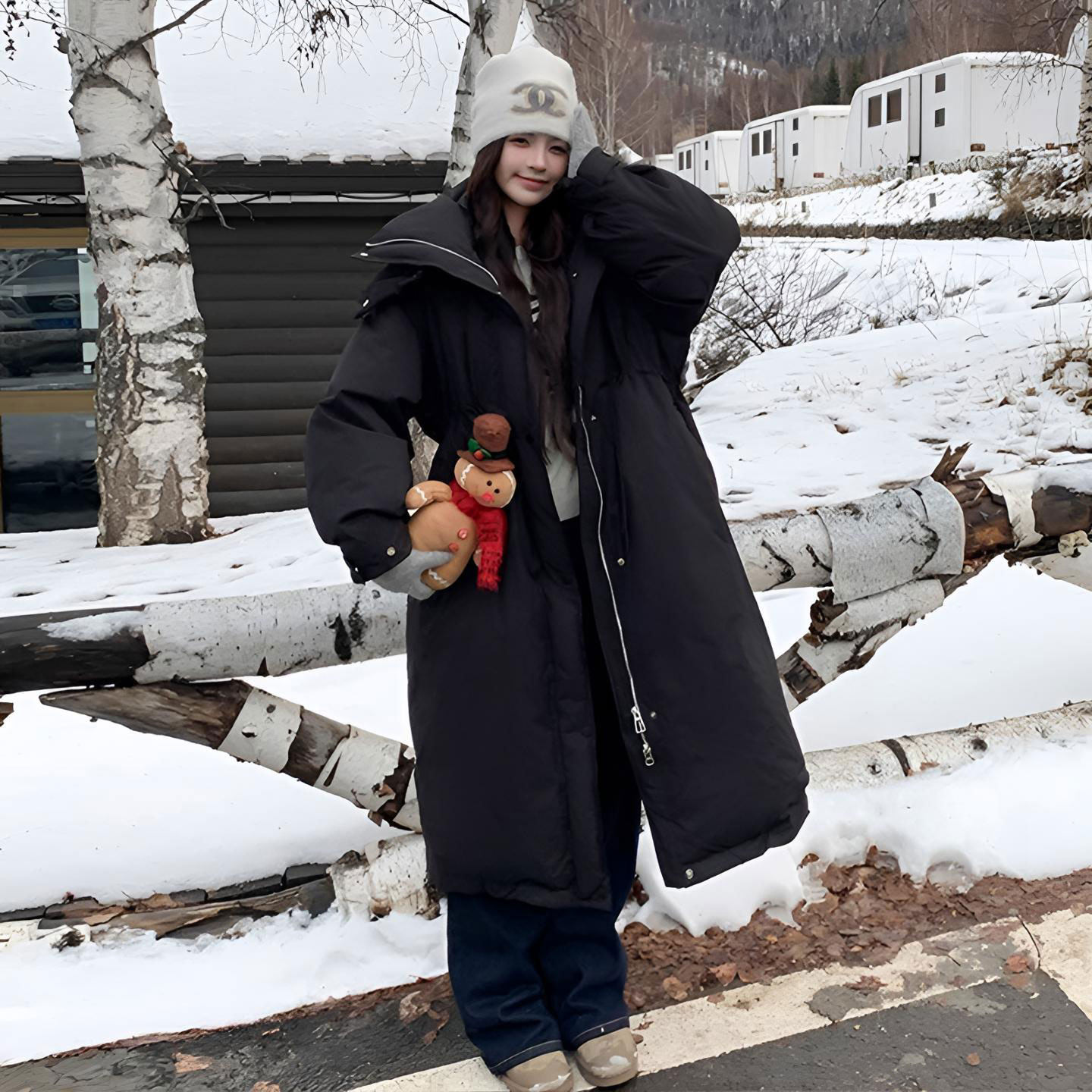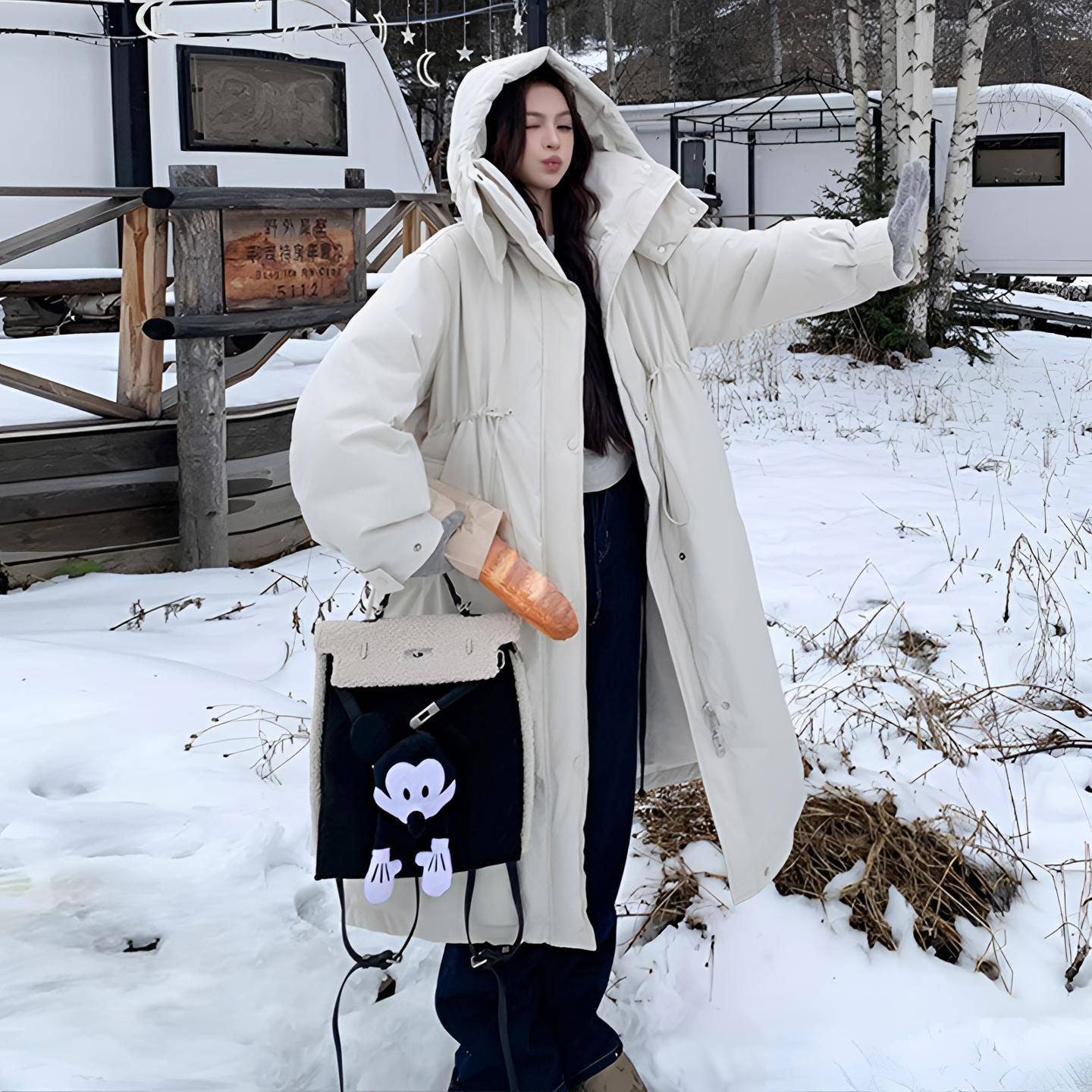 📚 特大码胖mm黑色收腰显瘦羽绒棉服女冬季设计感中长款加厚棉衣外套