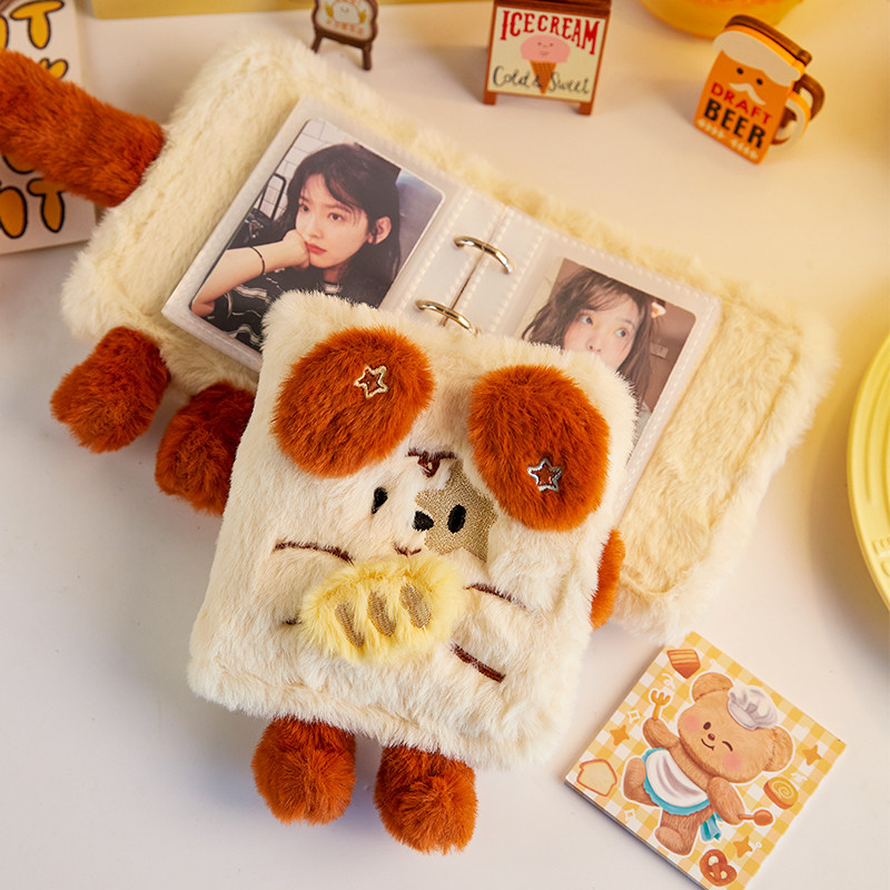 📚 可爱小狗毛绒一宫格卡册3寸活页内页高颜值面包造型相册收纳册ins风萌萌哒爱豆专辑小卡卡片收纳册拍立得相册