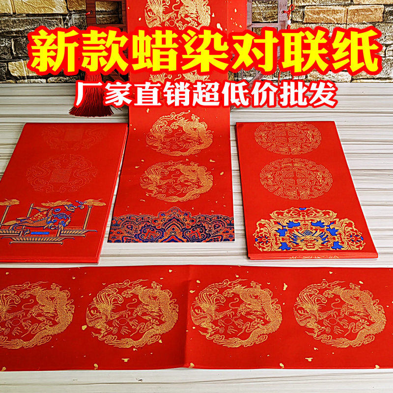 📚 新款万年红蜡染对联纸空白宣纸春联定制订做印logo烫金春联红纸