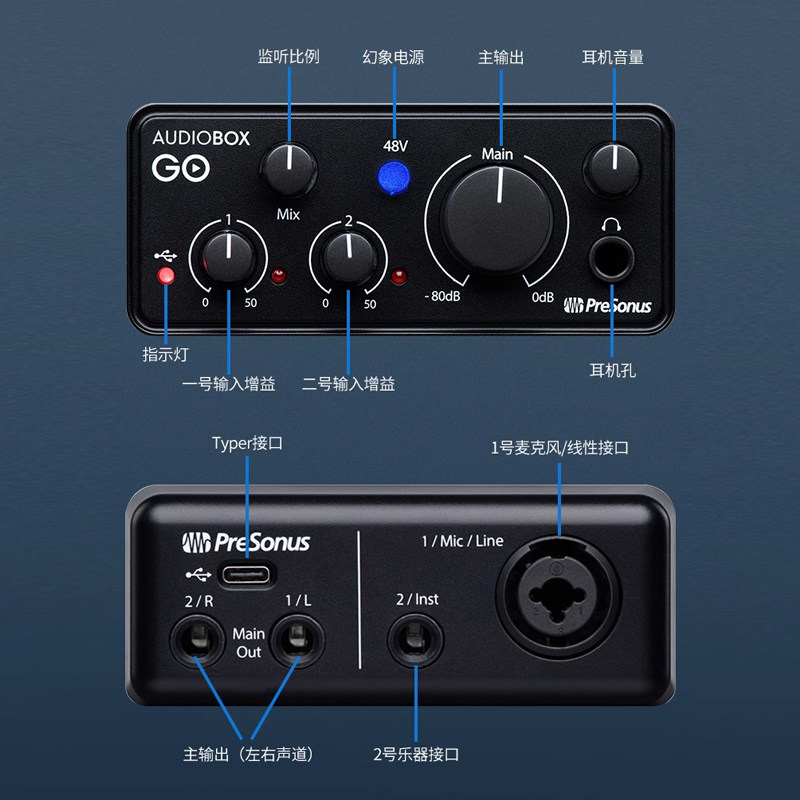 📚 PreSonus普瑞声纳 AudioBox GO USB96 io44 24c USB音频接口声卡