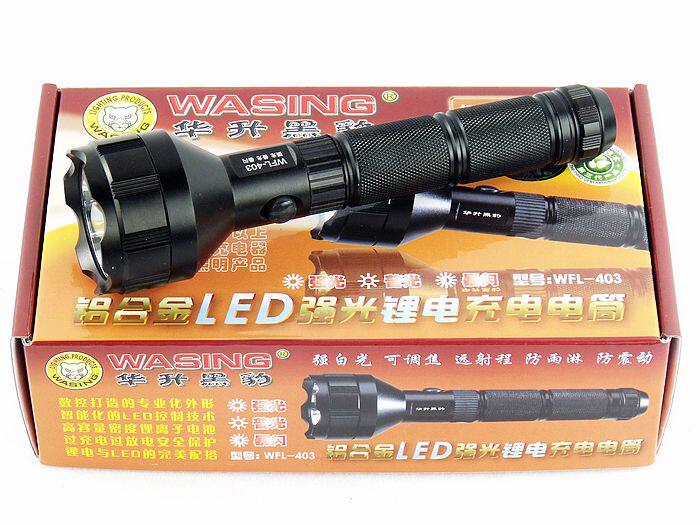 📚 华升黑豹WFL403强光充电手电筒LED防水夜骑行保安巡逻防身探照灯