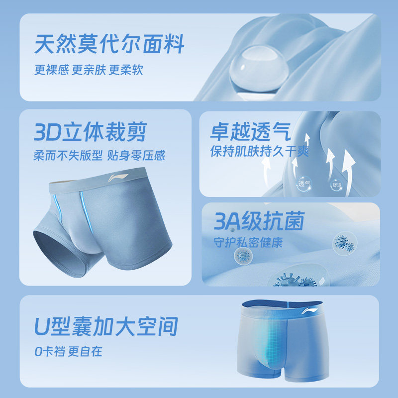 📚 李宁内裤男士青少年运动速干透气男生防磨裆跑步专用四角底裤新款