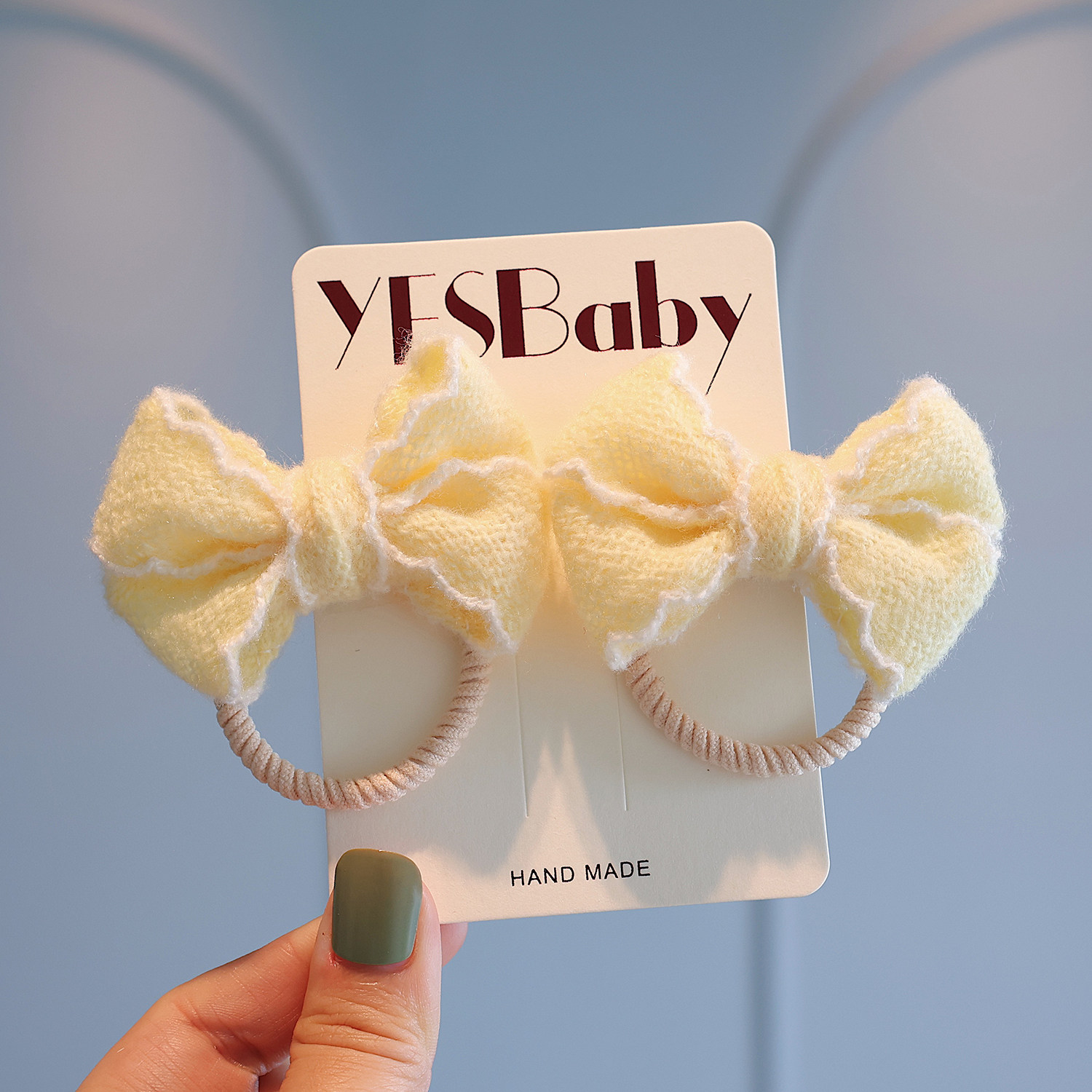 📚 温柔毛线可爱蝴蝶结发夹女童甜美不伤发皮筋小女孩双马尾绑发头绳