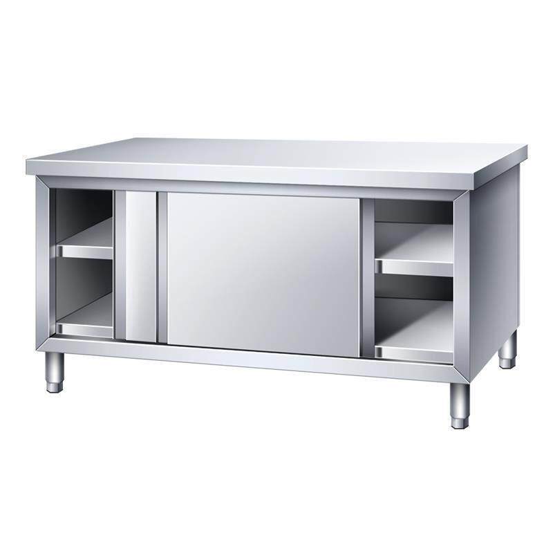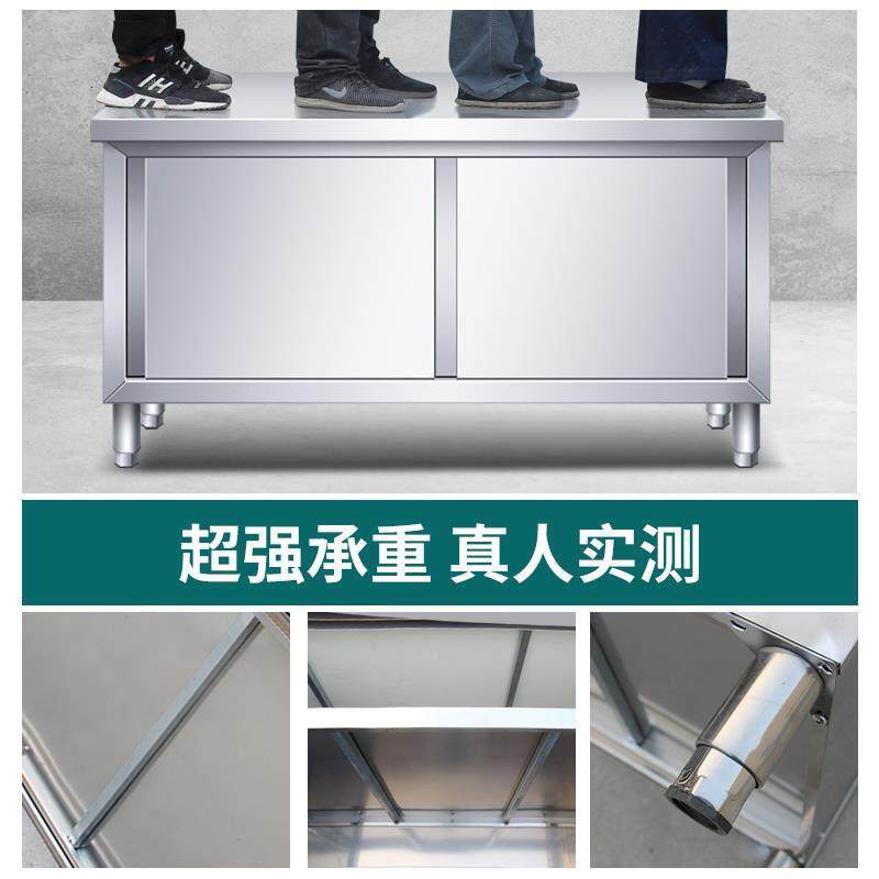 📚 焊接不锈钢工作台厨房操作台面收纳柜商用烘焙切菜桌子带拉门案板