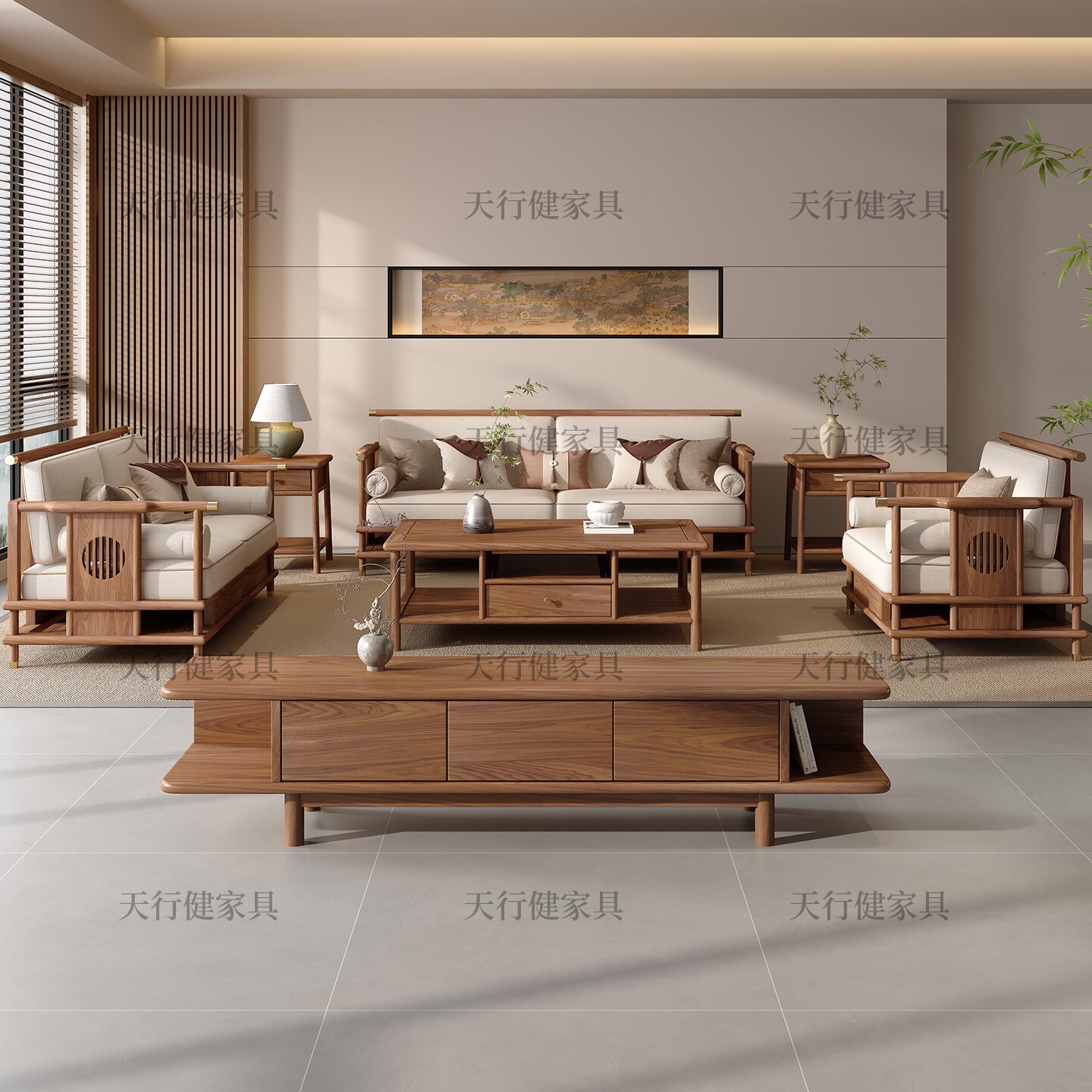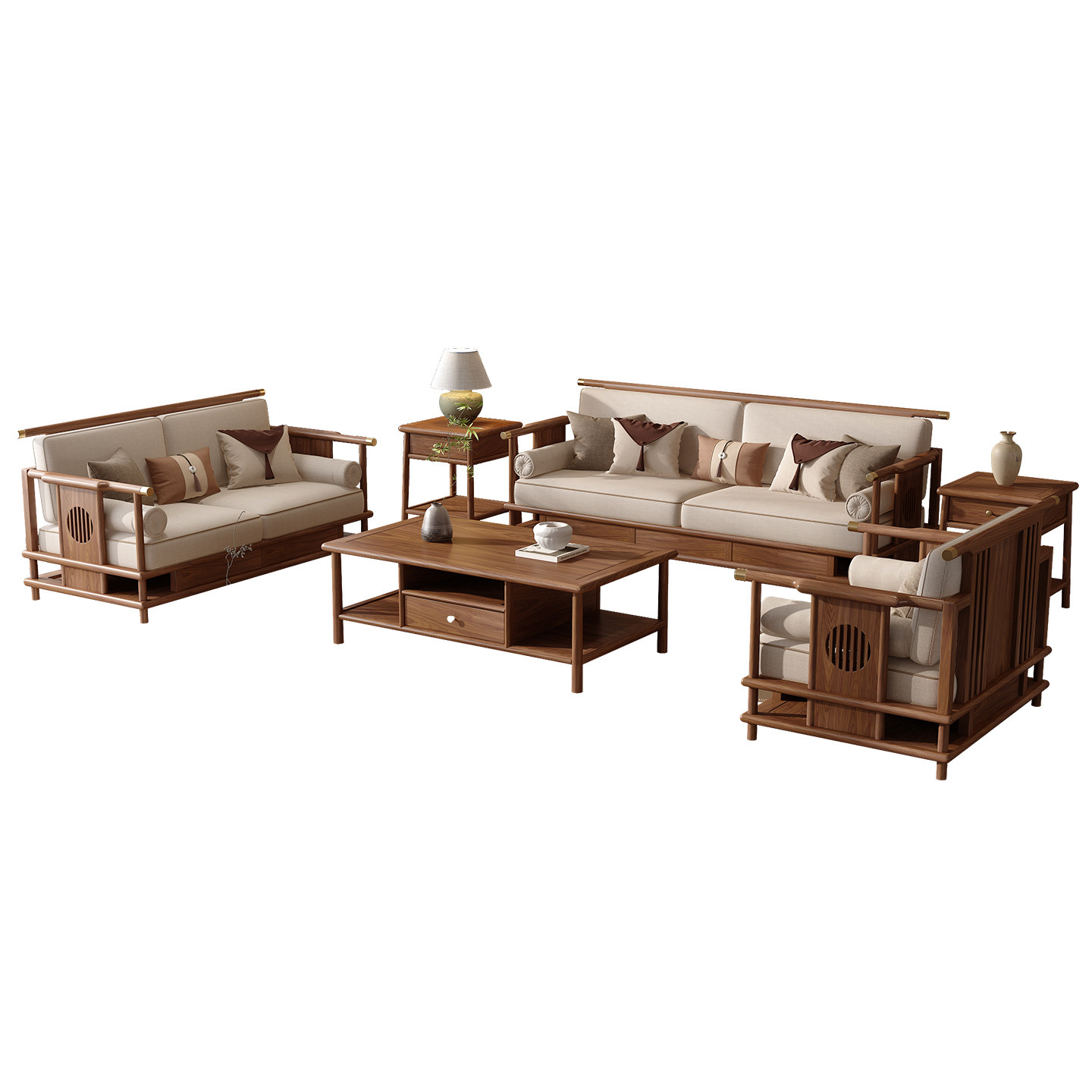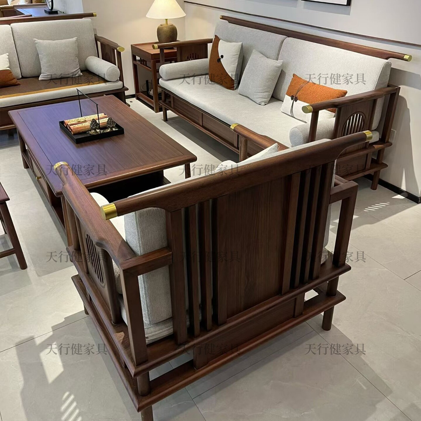 📚 新中式实木软包沙发北美黑胡桃木宋氏美学禅意客厅2025款家具组合