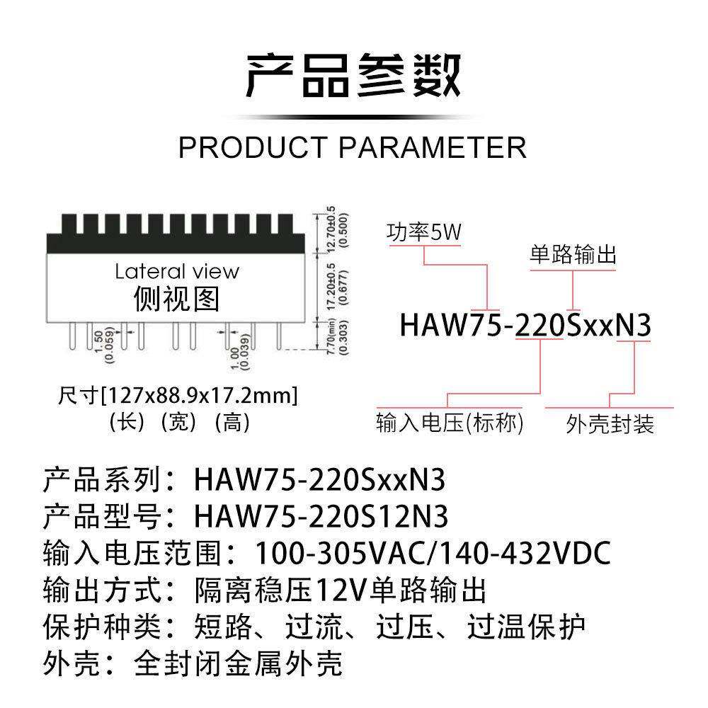 📚 100W单路12V8.3AAC-DC电源220V转12V稳压单路HAW100-220S12N3