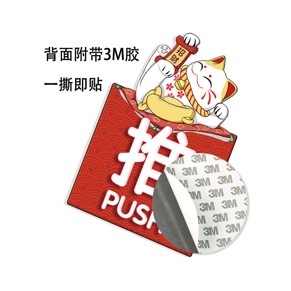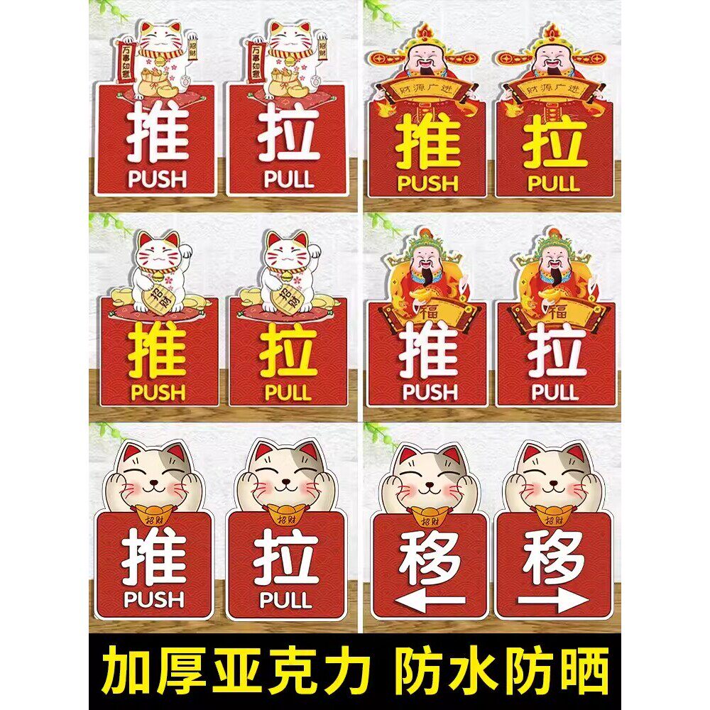 📚 移门提示贴玻璃门防撞贴纸厨房左右推拉门提示牌招财猫推拉标识牌大尺寸可爱办公室洗手间创意标志贴拉字贴纸