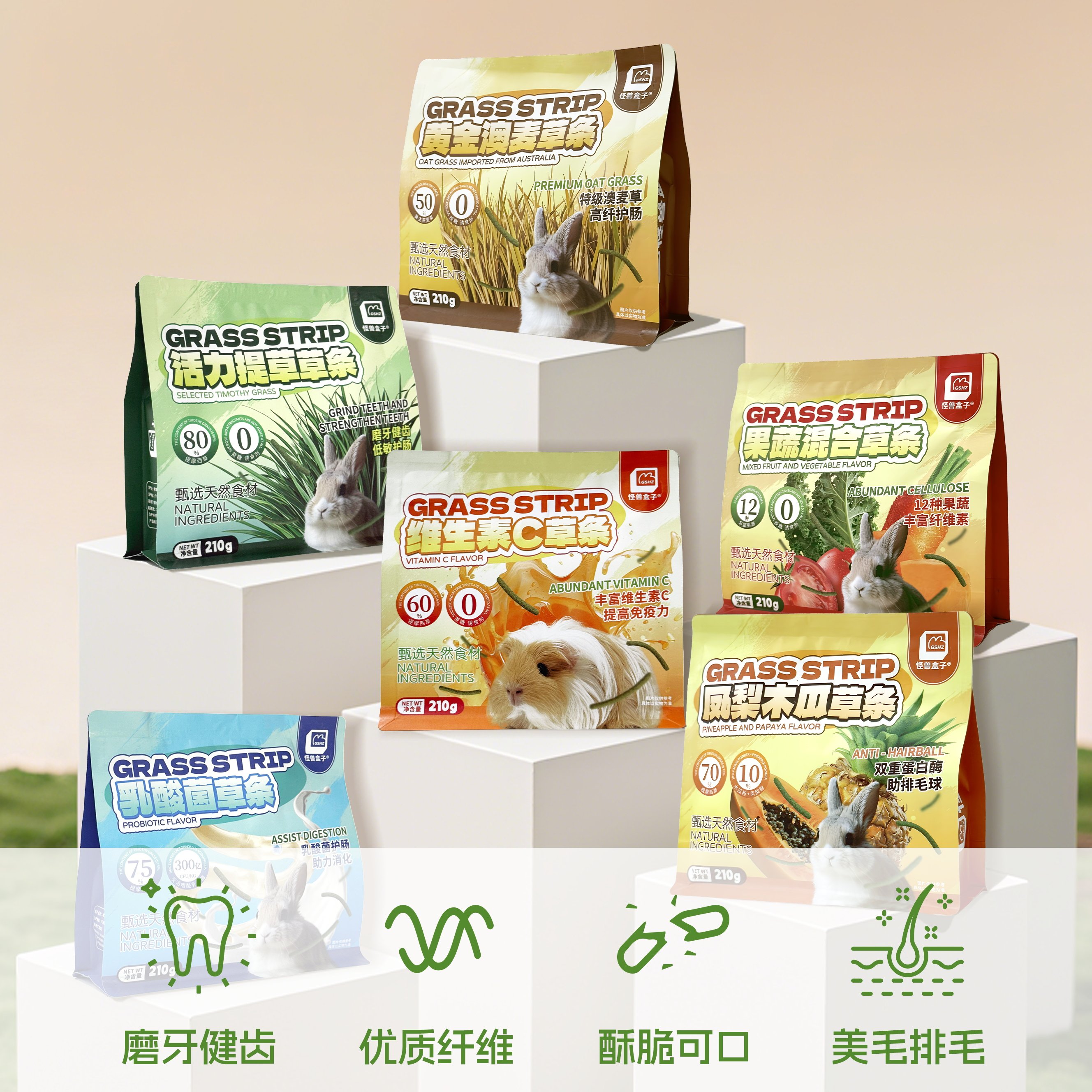 📚 怪兽盒子提草条乳酸菌澳麦木瓜排毛兔子龙猫荷兰猪磨牙零食草棒