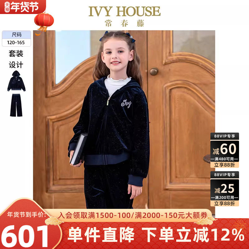 👗新品登场!IVY HOUSE常春藤儿童装女童2025秋新款针织丝绒套装,真的让人爱不释手!👩🎓
