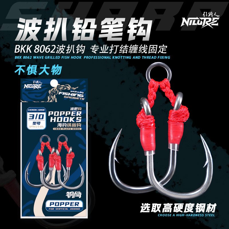 📚 引路人钢骨波爬钩波扒双钩海钓铁板钩深海水面系金枪GT短绳绑钩