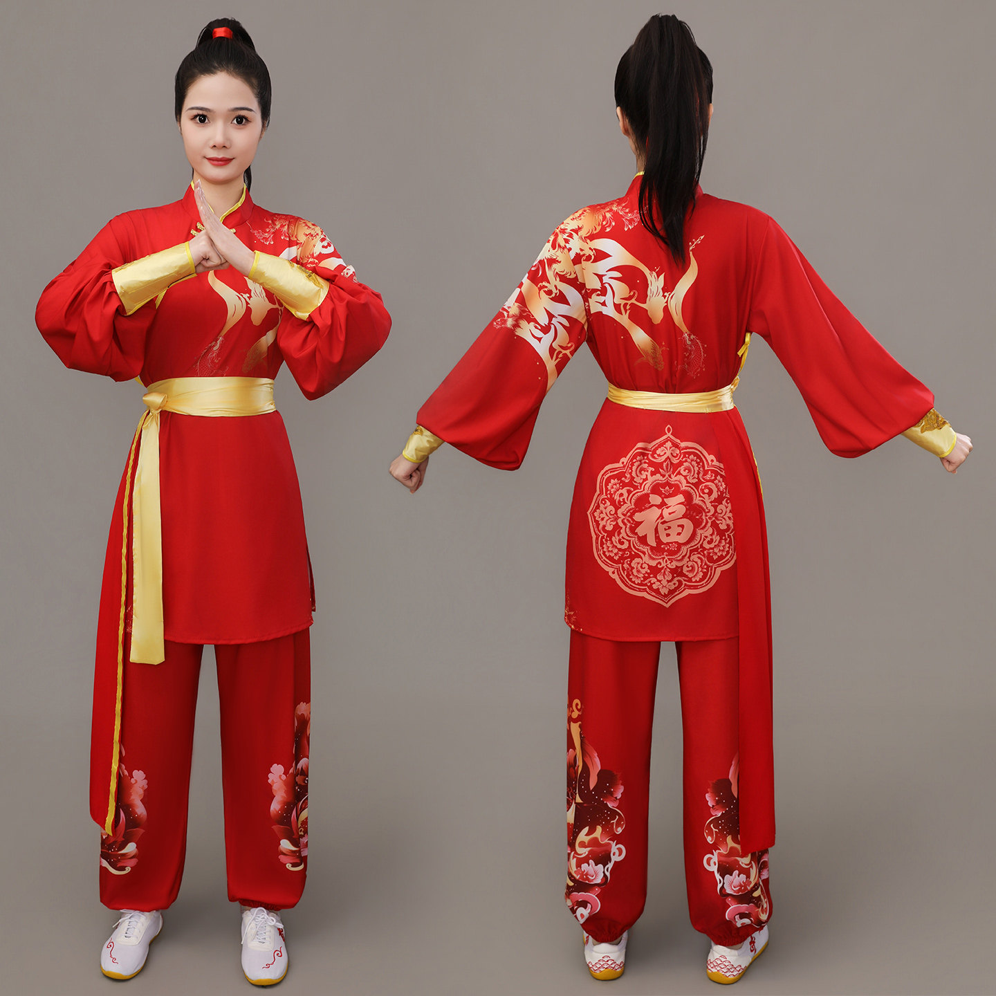 📚 武术表演服中国风古典舞男女成人锣鼓舞龙舞狮打鼓服装太极剑演出