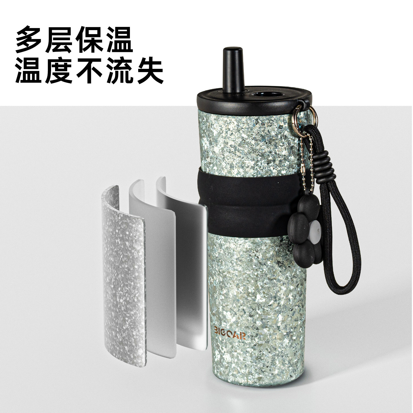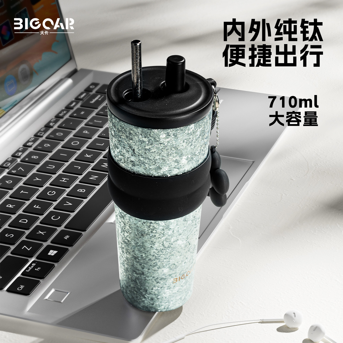 📚 bigcar纯钛保温杯2025新款吸管水杯子高颜值女车载咖啡杯送礼钛杯