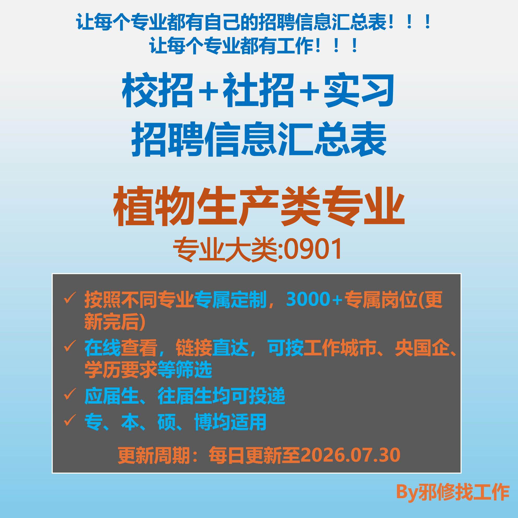 📚 26届植物生产类校招秋招春招国企央企社招实习招聘信息汇总表