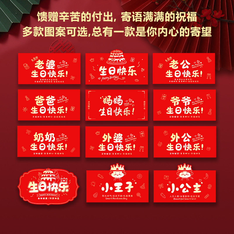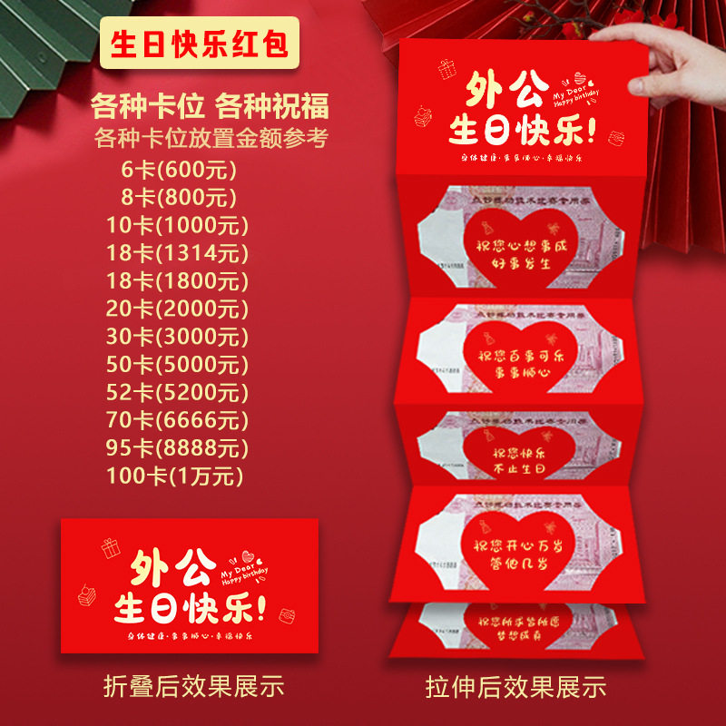 📚 爷爷生日快乐红包奶奶外公外婆大寿老人送礼20张100卡放1万元5000