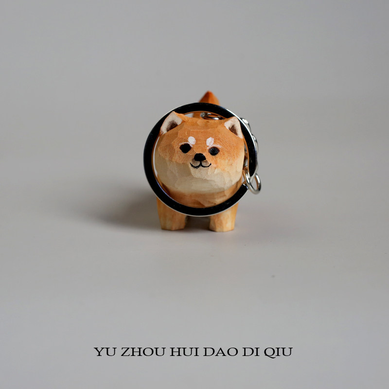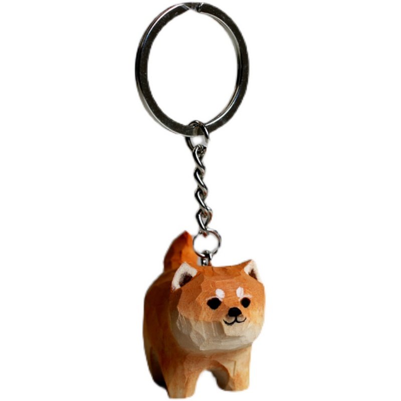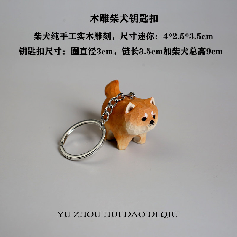 📚 木雕柴犬钥匙扣小狗狗秋田犬精致女生汽车钥匙圈挂件男生生日礼物