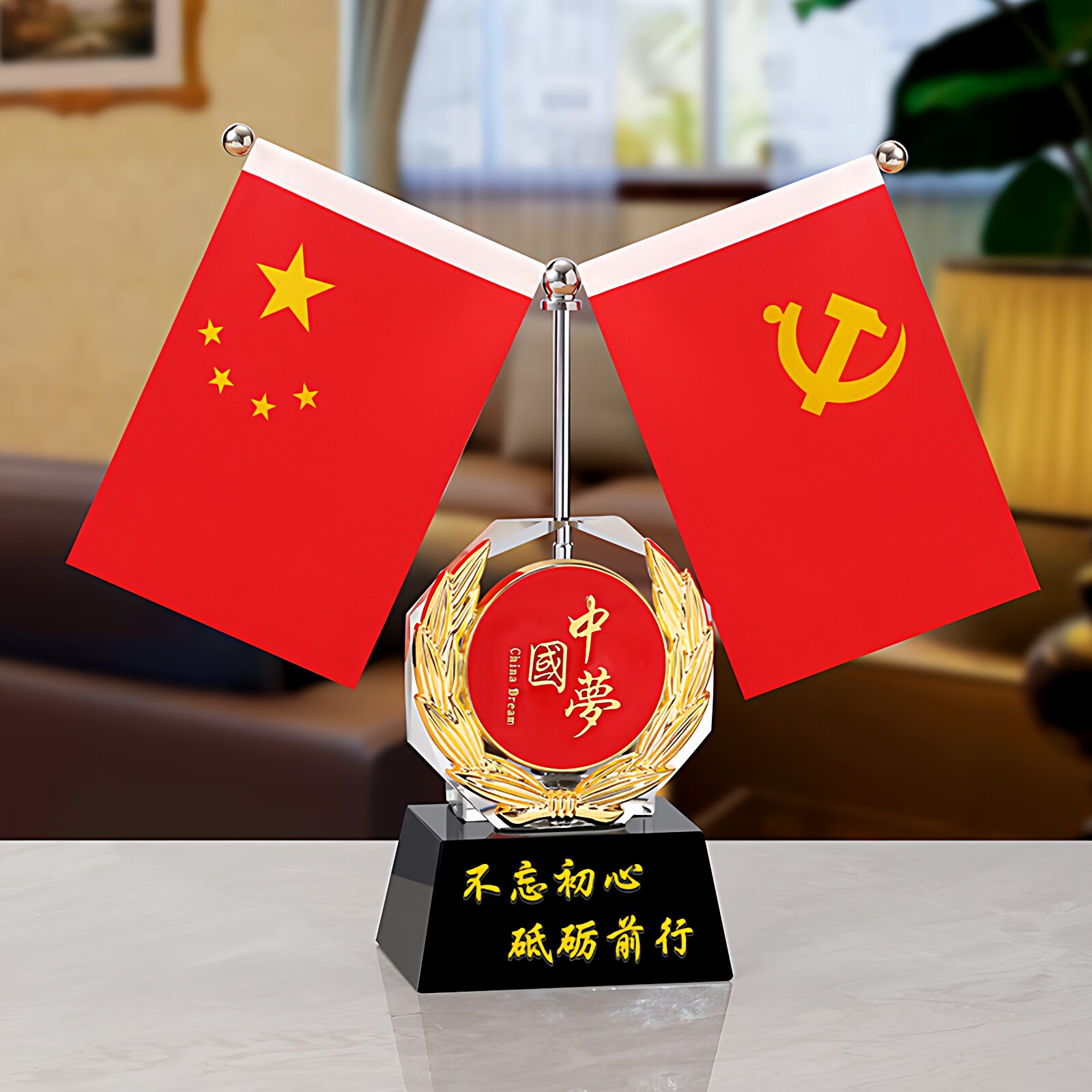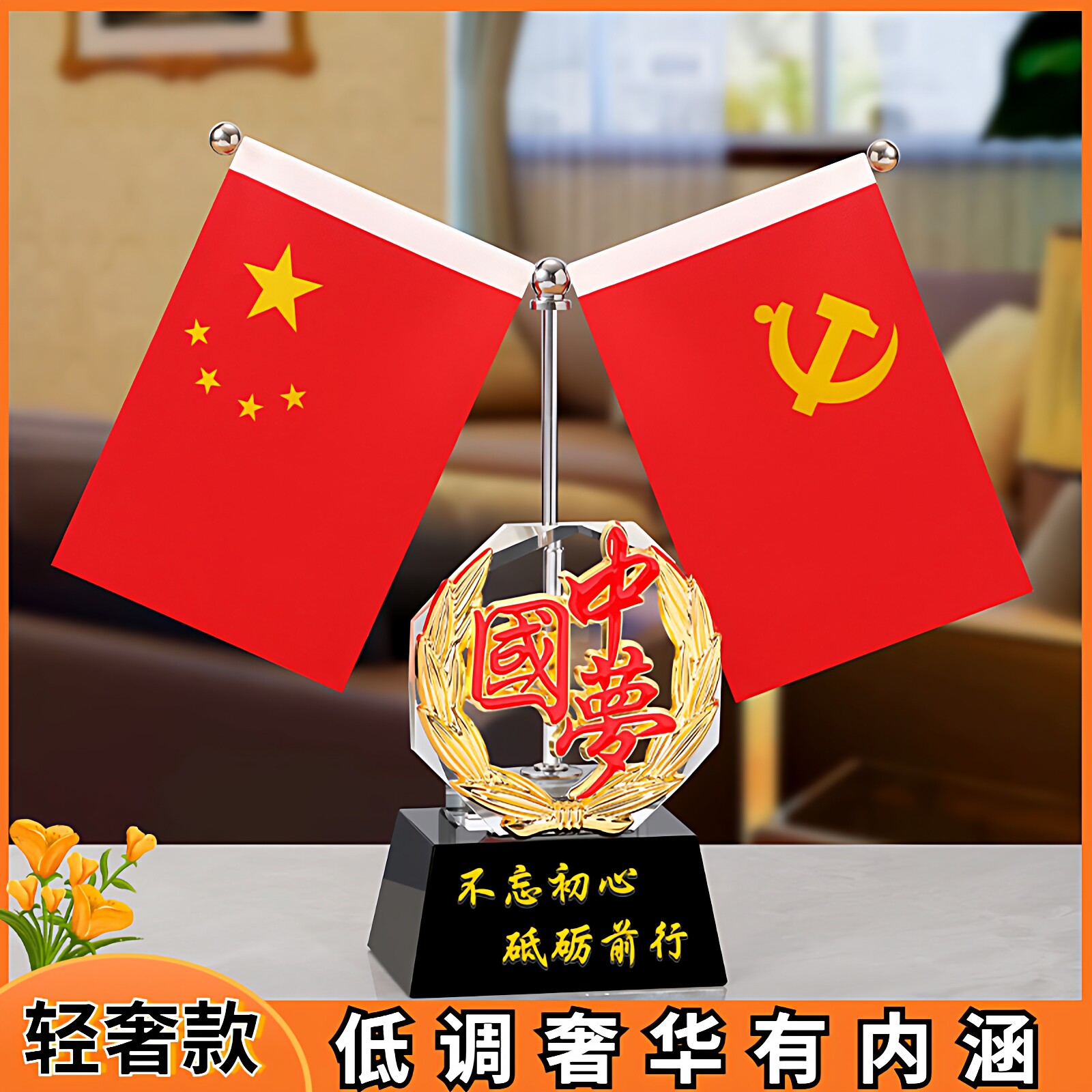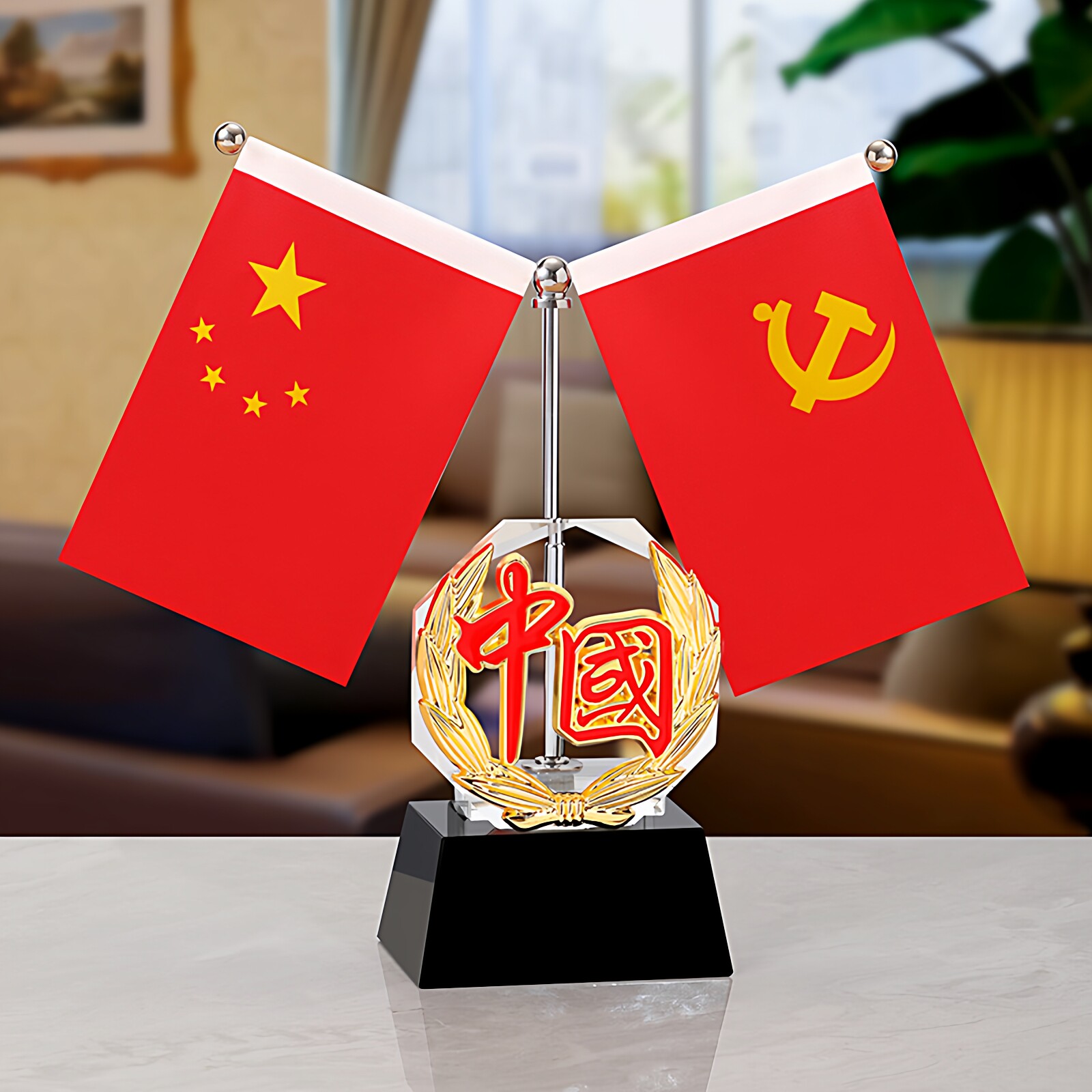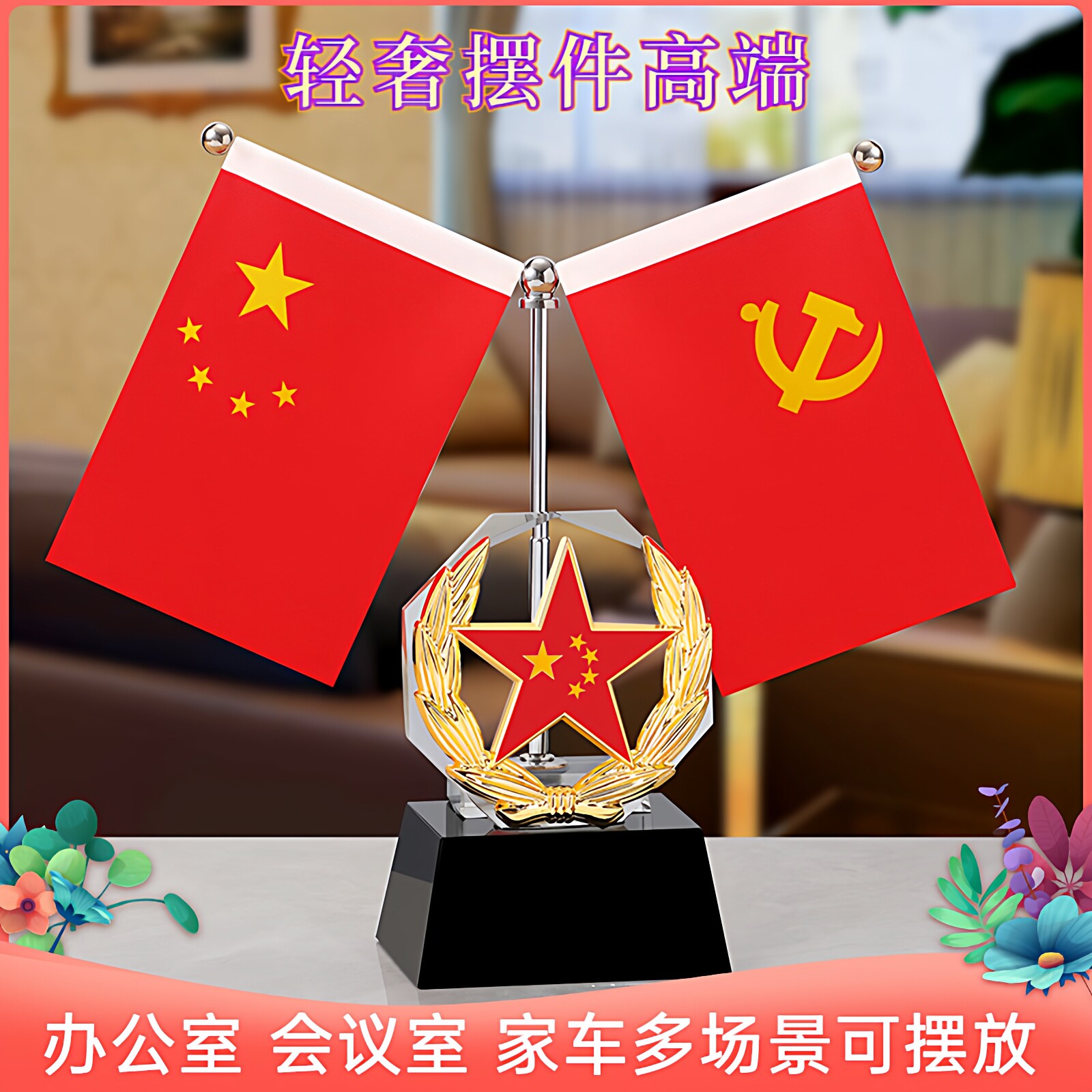 📚 红旗摆件办公室创意水晶纪念品车载桌面五星红旗会议室旗帜装饰品