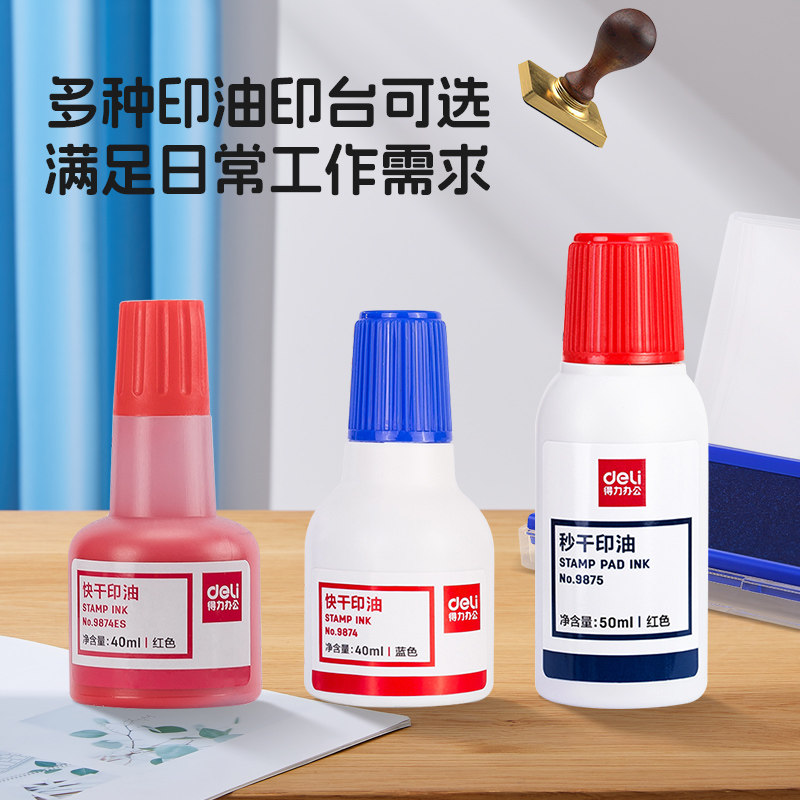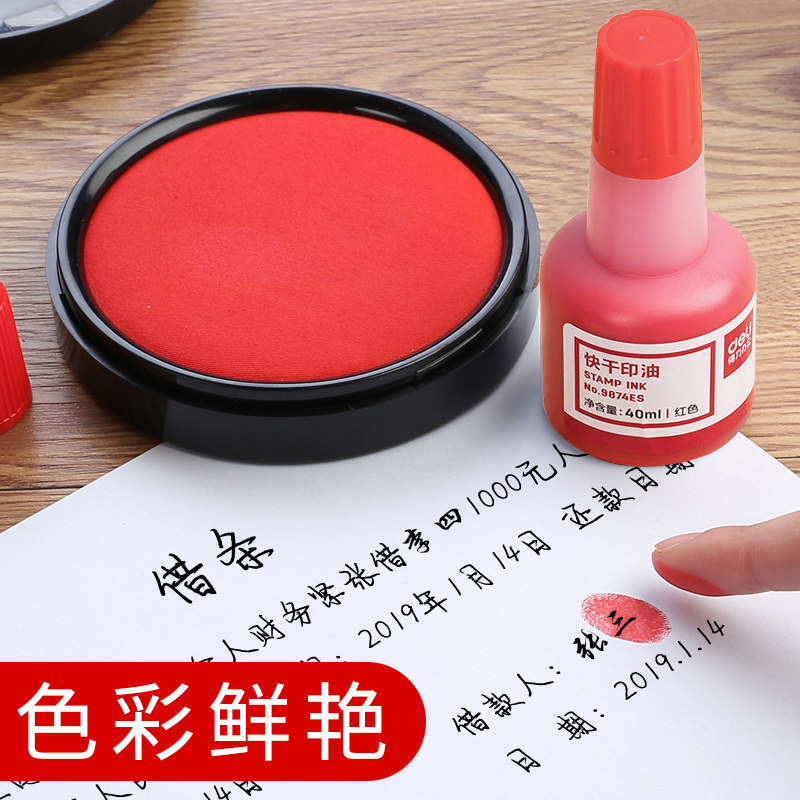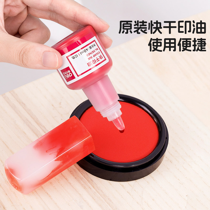 📚 得力印台印油快干秒干办公用品红色蓝财务盖章便携印泥盒套装