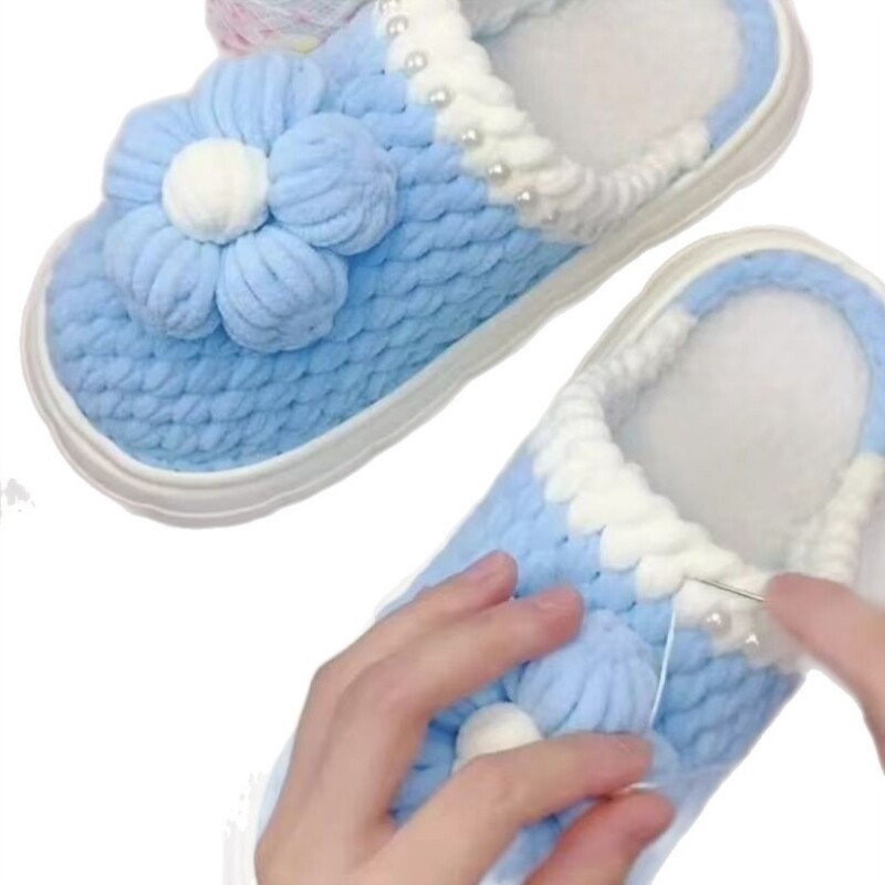 📚 新款!云朵底 冰条线泡芙花鸳鸯手工编织家居拖鞋材料包亲子闺蜜