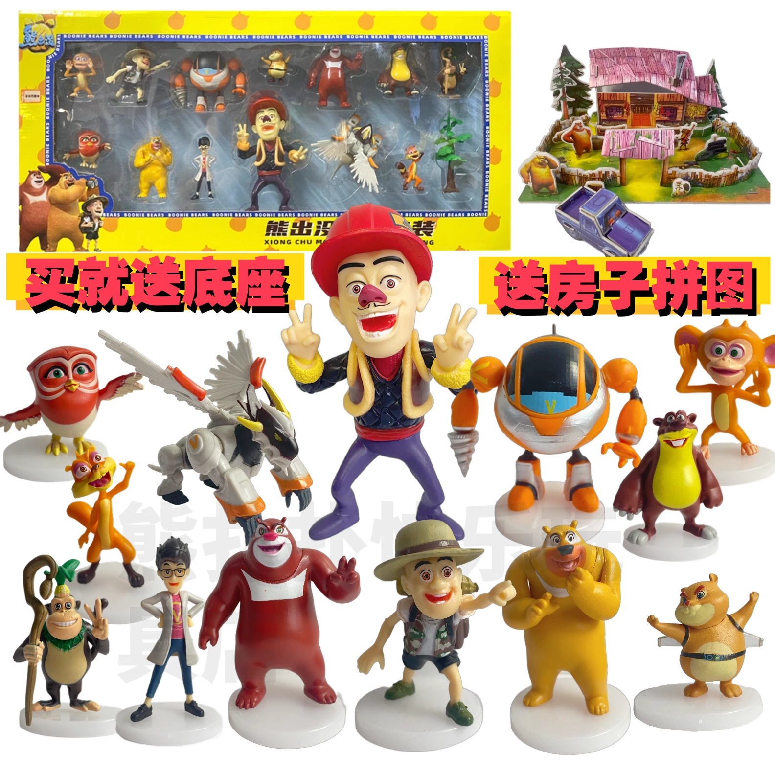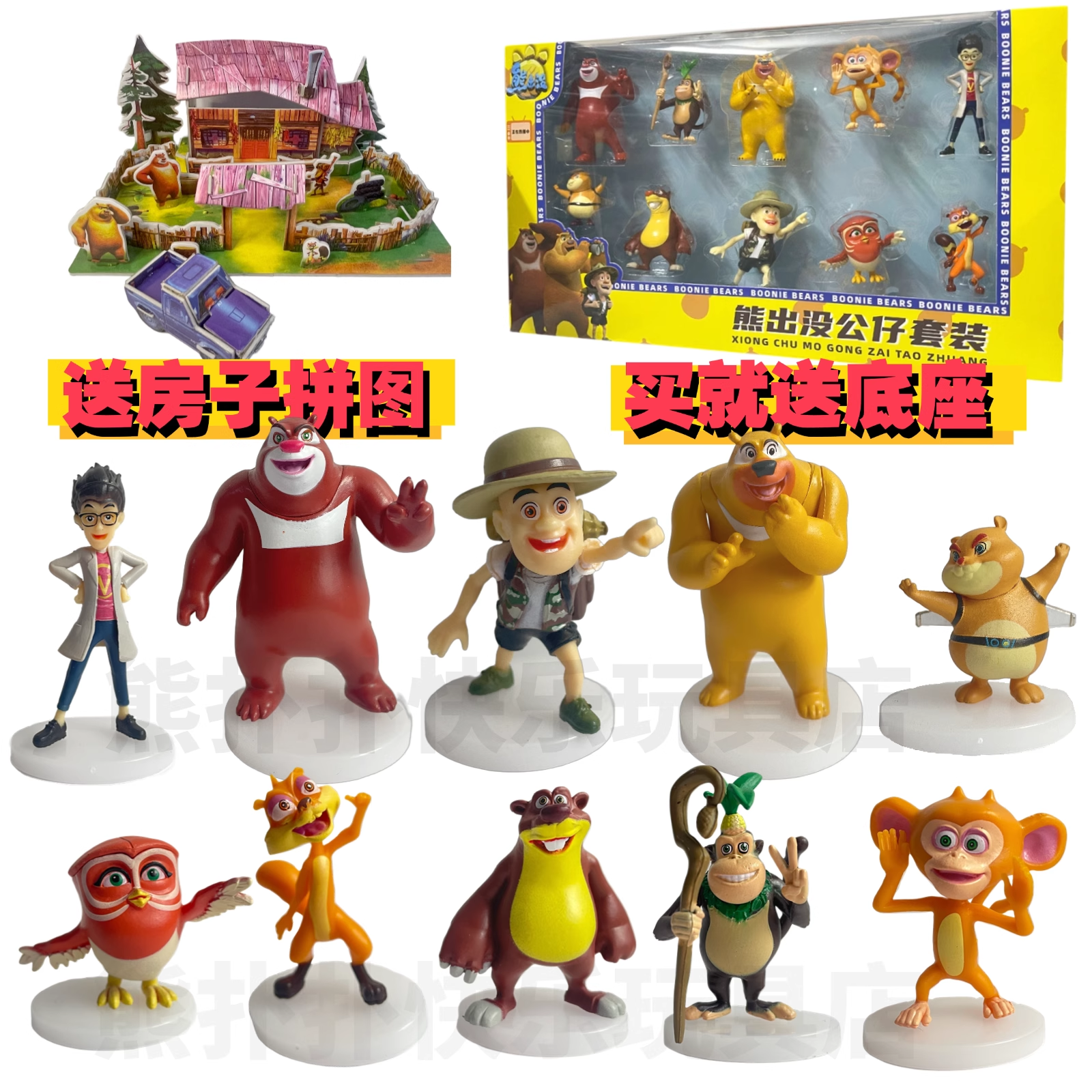 📚 熊出没天才威熊大熊二光头强洞洞幺之怪兽计划儿童玩具套装摆件