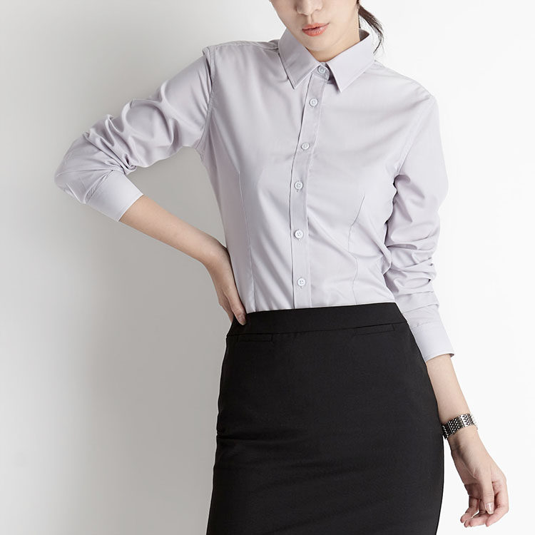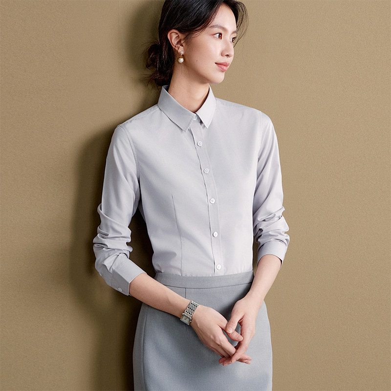 📚 OFFIY-防皱免烫职业面试正式白色灰色正装公务员打底修身长袖衬衫