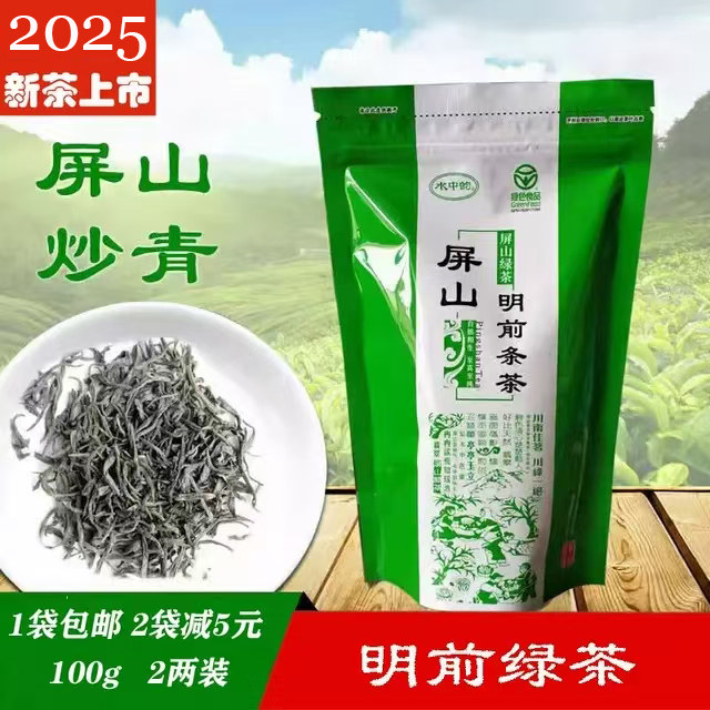 📚 2025早春新茶叶宜宾早茶水中韵屏山炒青绿茶明前条茶高山茶100克