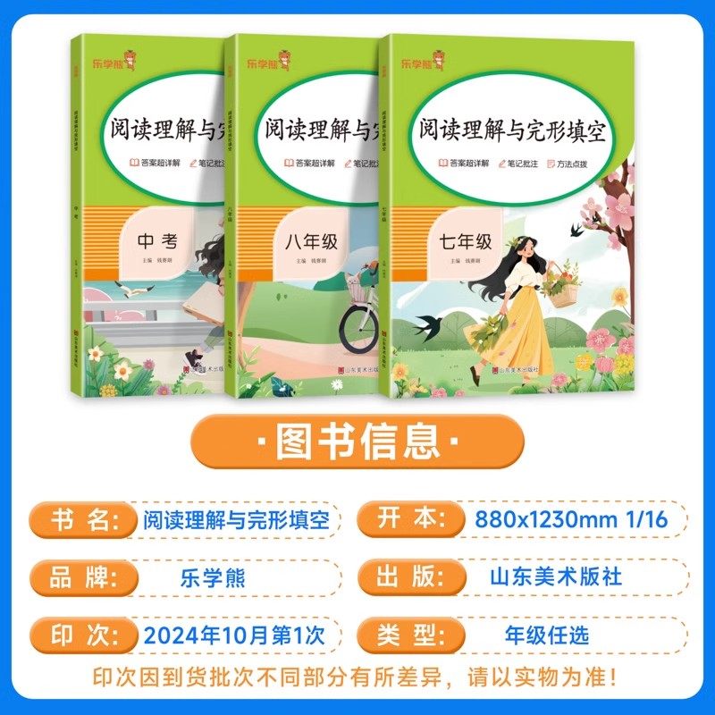 📚 2025初中英语阅读理解与完形填空七八九年级乐学熊阅读理解初一初二初三语文数学英语阅读理解与完形填空计算训练答题技巧初中通用