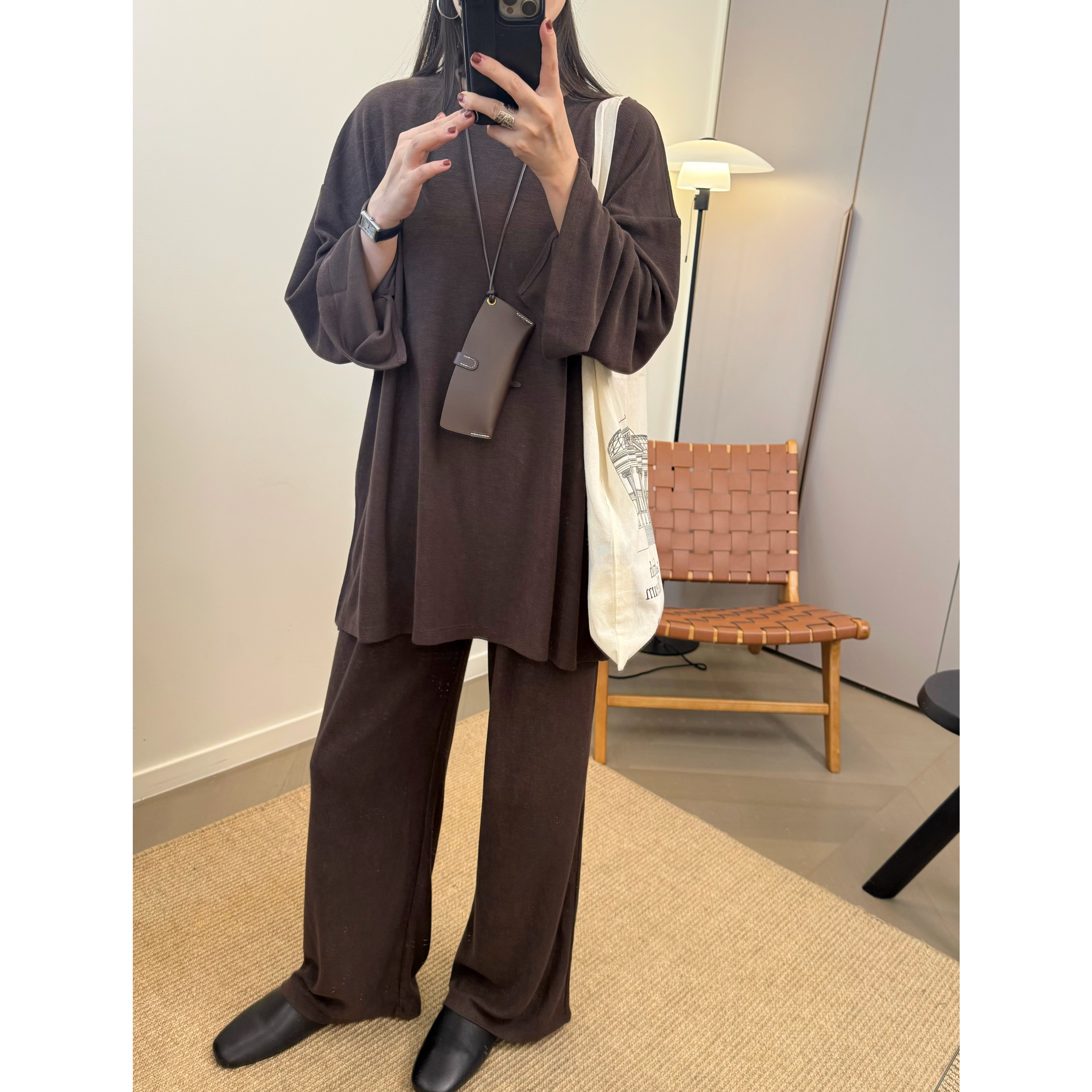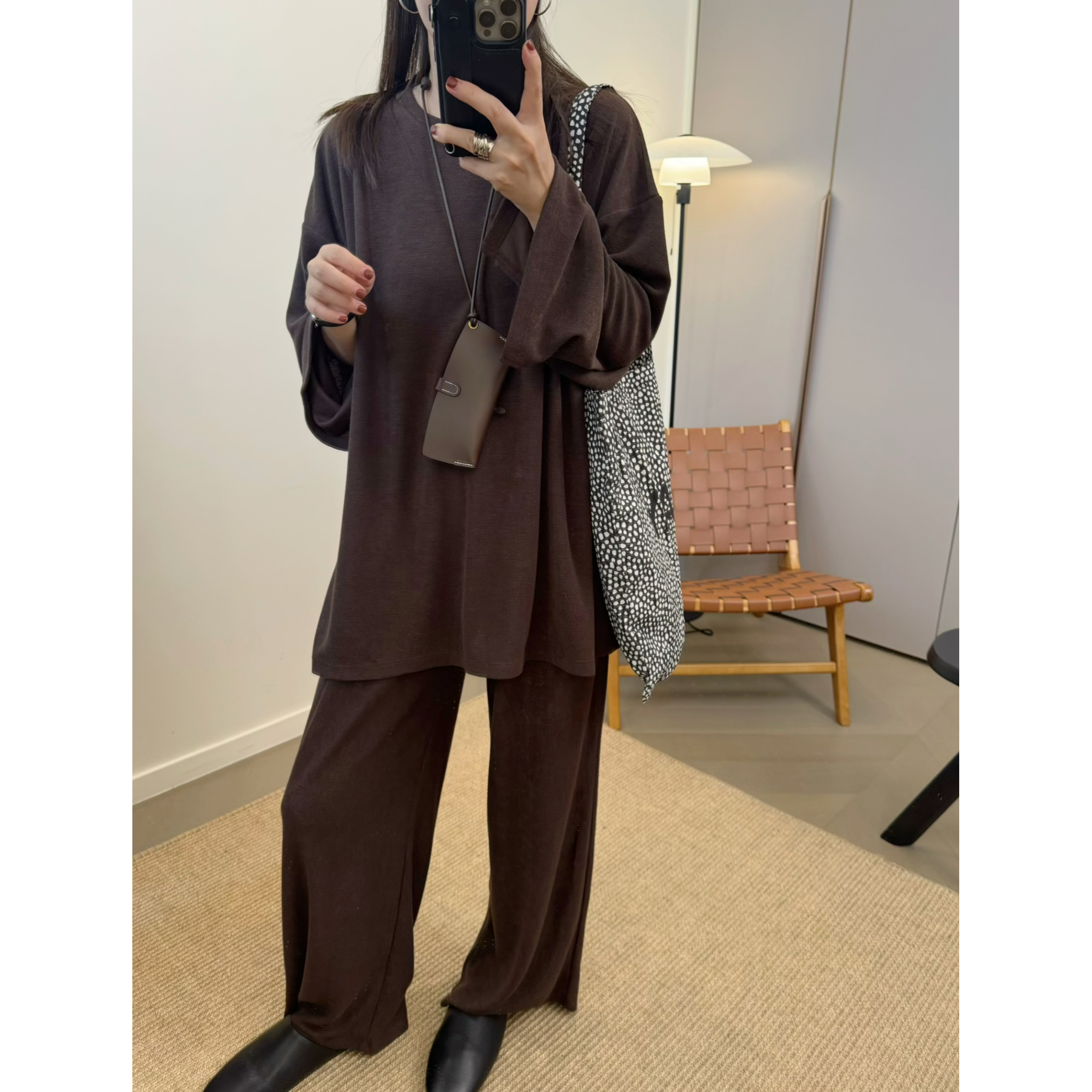 📚 MKDesign 秋季新品 休闲显瘦宽松大T恤运动毛衣面料套装拖地裤
