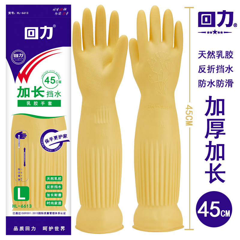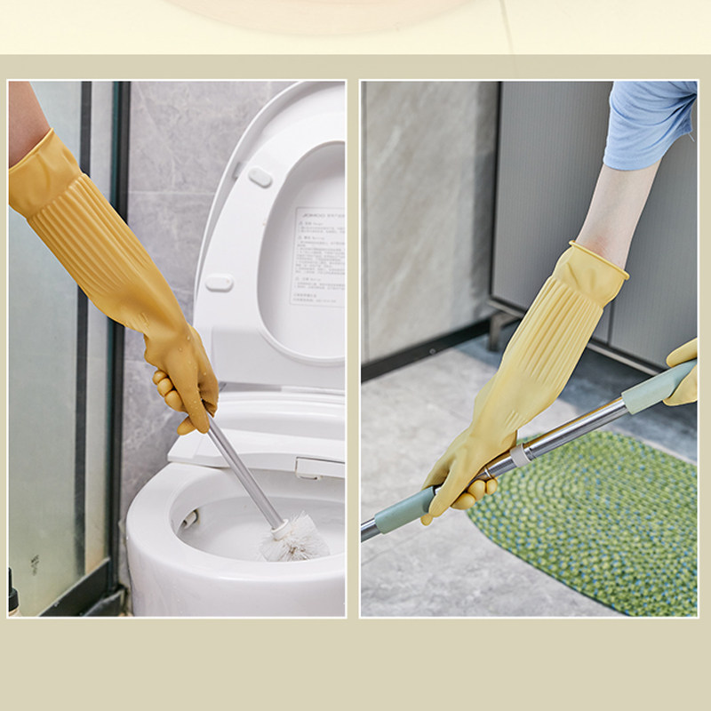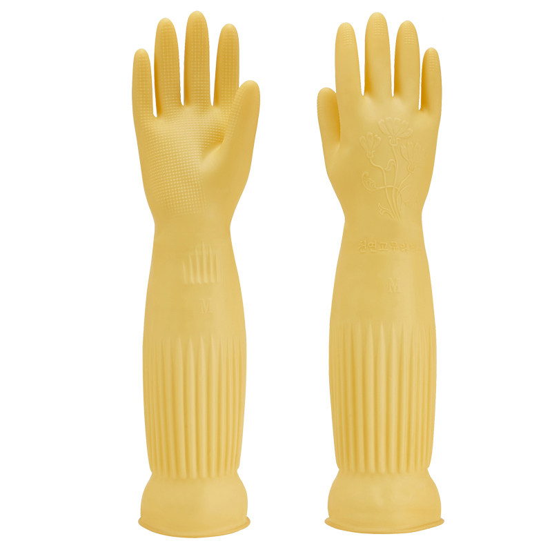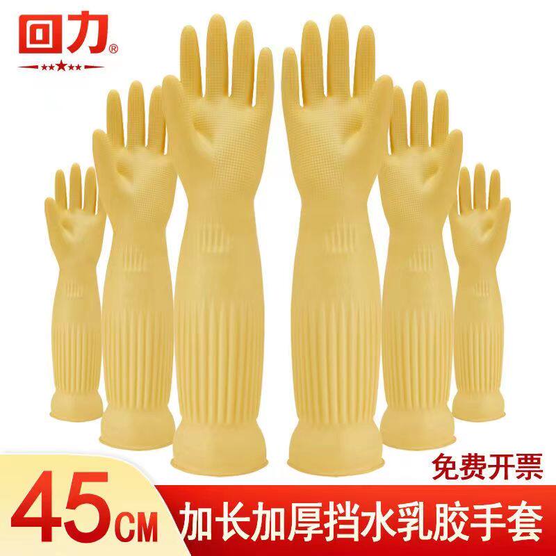 📚 45厘米加长挡水乳胶手套家庭清洁厨房洗碗洗菜橡胶牛筋加厚黄色女