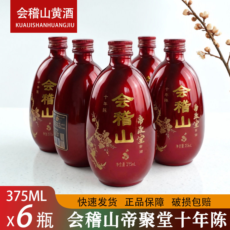 📚 绍兴黄酒会稽山十年陈花雕酒整箱礼盒375mlx6瓶装 帝聚堂黄酒