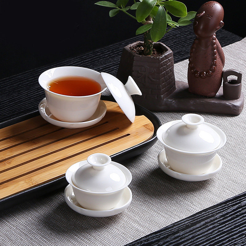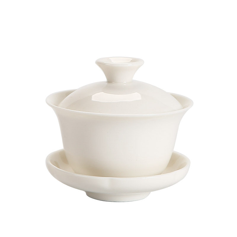 📚 德化白瓷小盖碗单个功夫茶具迷你评审茶碗陶瓷薄胎家用泡茶碗60ml