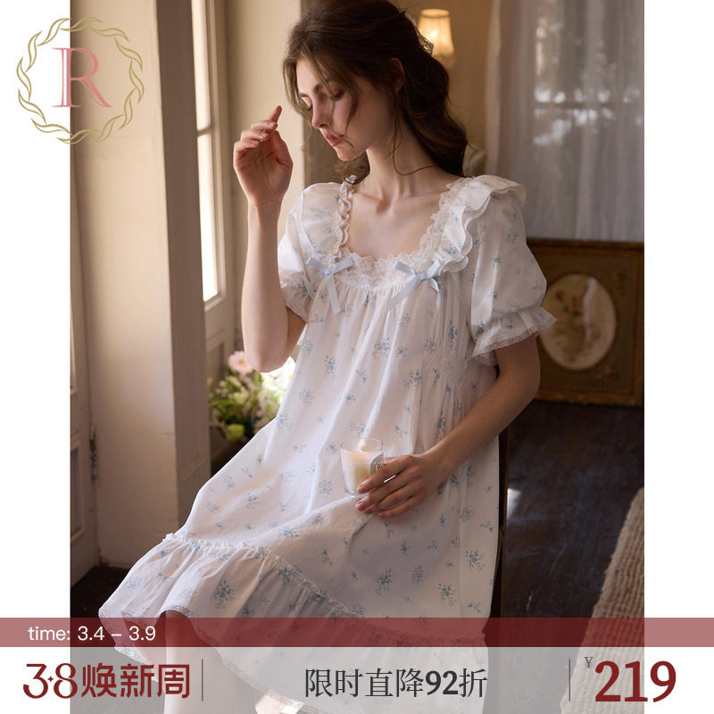 📚 RoseTree蕾丝睡裙女款夏季短袖甜美可爱少女宫廷公主风睡衣夏天