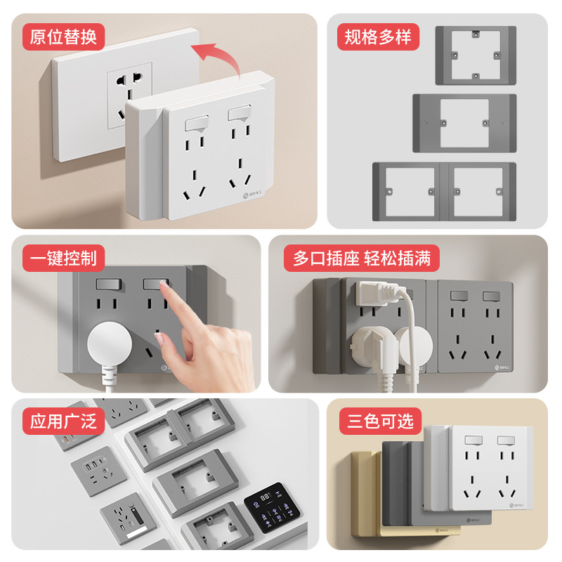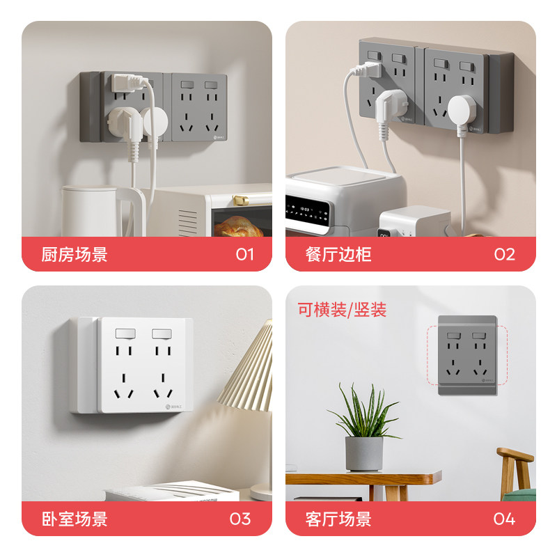 📚 118型改86型面板二开十孔家用两开双位五孔一键断电八孔10孔插座