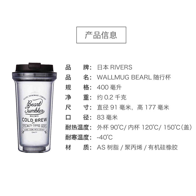 📚 日本Rivers Bearl随行杯密封保温防烫防漏便携透明滤网咖啡冷萃杯