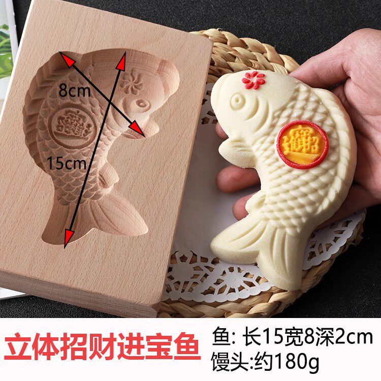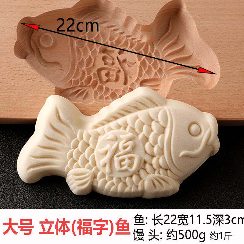 📚 过年做馒头花模具手工立体鲤鱼面鱼寿桃花样面食木质大小号加深