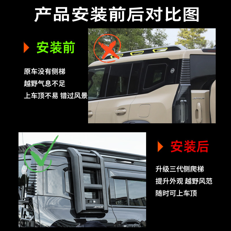 📚 捷途山海T2旅行者五代侧爬梯车顶行李架平台框改装帐篷小书包外观