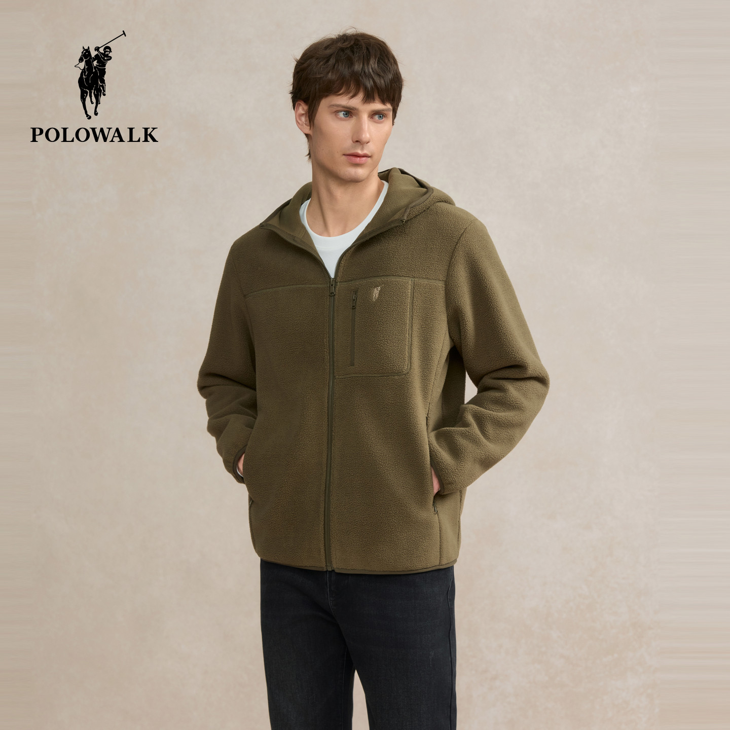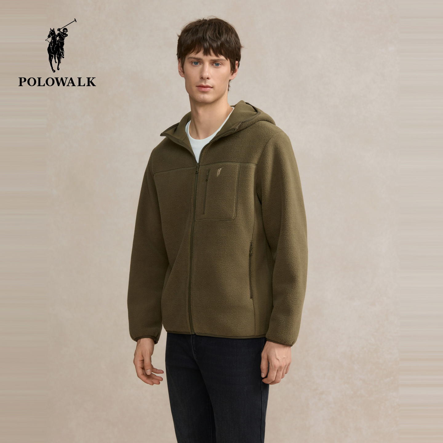 📚 POLOWALK男式外套2025冬季新品保暖户外通勤摇粒绒连帽外套男装