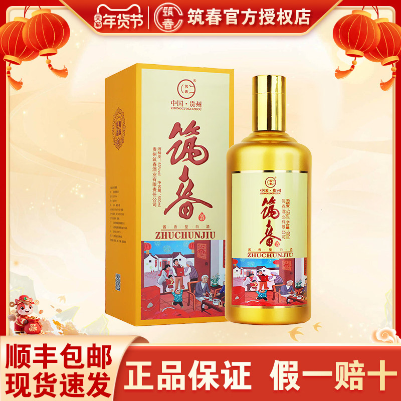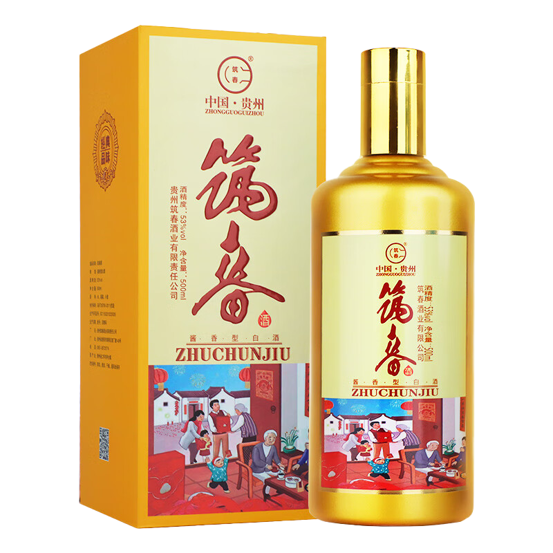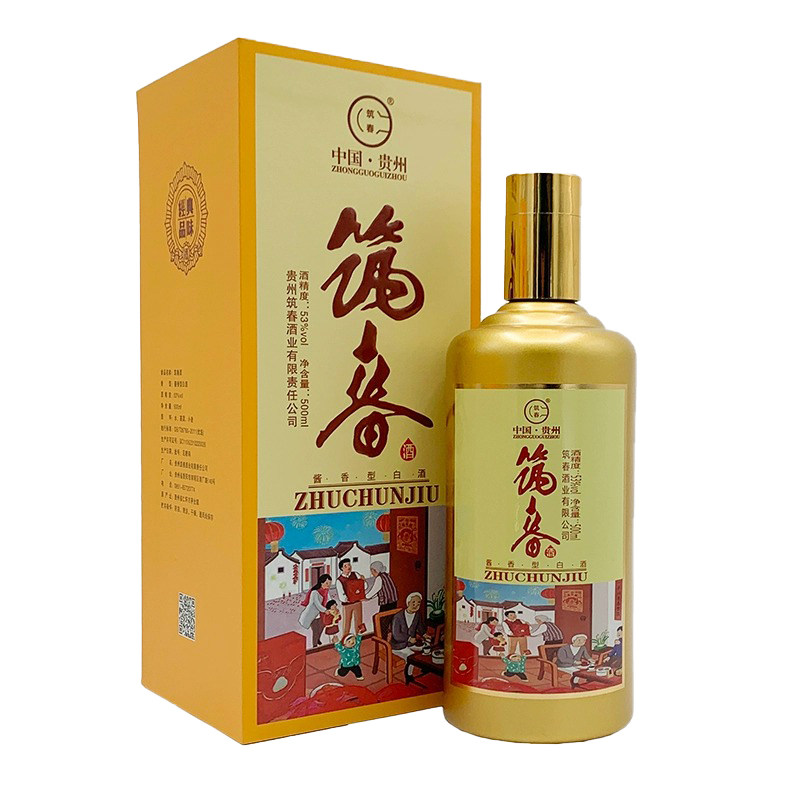 📚 贵州筑春好日子合家欢53度酱香型纯粮白酒500ml瓶婚礼节日送礼